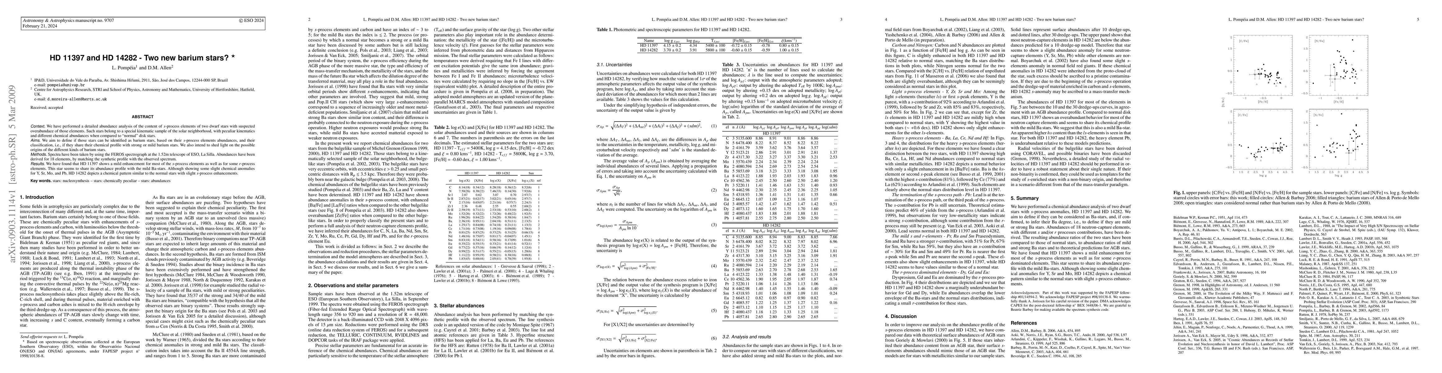 We have performed a detailed abundance analysis of the content of s-process elements of two dwarf stars with suspected overabundace of those elements. Such stars belong to a special kinematic sample of the solar neighborhood, with peculiar kinematics and different chemical abundances when compared to "normal" disk stars. We aim to define if those stars can be identified as barium stars, based on their s-process elements abundances, and their classification, i.e., if they share their chemical profile with strong or mild barium stars. We also intend to shed light on the possible origins of the different kinds of barium stars. Spectra have been taken by using the FEROS spectrograph at the 1.52m telescope of ESO, La Silla. Abundances have been derived for 18 elements, by matching the synthetic profile with the observed spectrum. We have found that HD 11397 shows a mild enhancement for most of the s-process elements as well as for some r-process elements. This star seems to share its abundance profile with the mild Ba-stars. Although showing some slight chemical anomalies for Y, Sr, Mo, and Pb, HD 14282 depicts a chemical pattern similar to the normal stars with slight s-process enhancements.