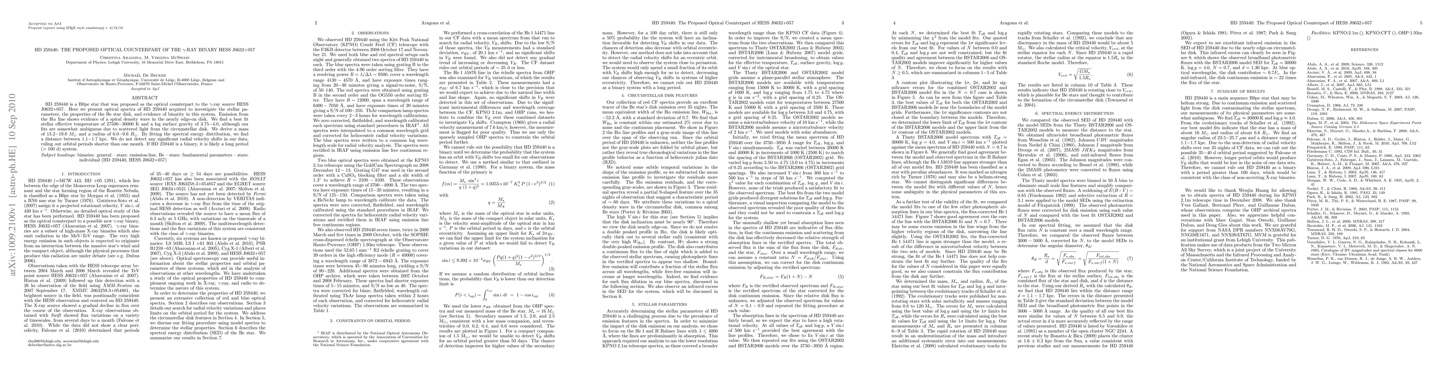 HD 259440, a B0pe star, is proposed as the optical counterpart to gamma-ray source HESS J0632+057. Spectral analysis reveals a hot, massive star with a dense, nearly edge-on disk showing spiral density waves; no significant radial velocity shifts indicate a potential long-period (>100 d) binary system if it is binary at all.
