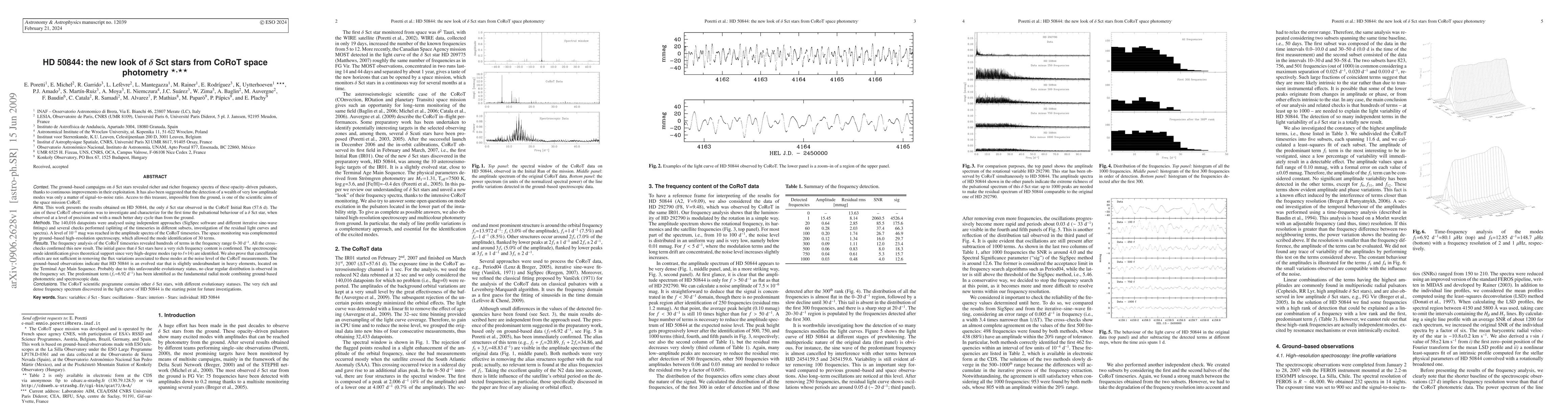 This paper analyzes HD 50844 using CoRoT space photometry, revealing hundreds of low-amplitude oscillation modes, confirming Delta Sct stars' rich frequency content. Spectroscopic identification supports high-degree modes, while ground-based observations suggest HD 50844's unfavorable evolutionary status.