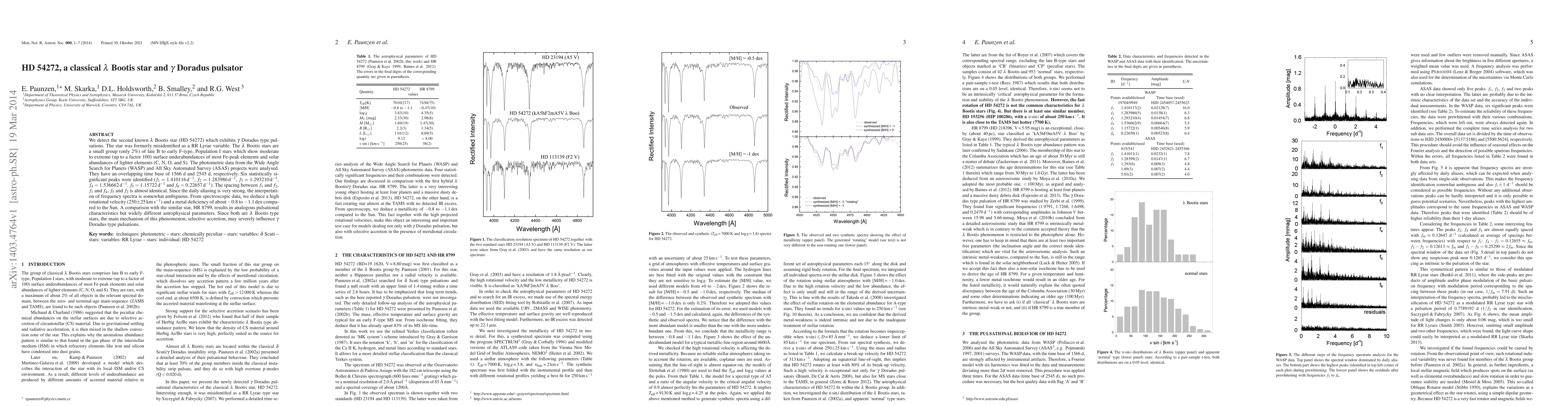 We detect the second known lambda Bootis star (HD 54272) which exhibits gamma Doradus-type pulsations. The star was formerly misidentified as a RR Lyrae variable. The lambda Bootis stars are a small group (only 2 per cent) of late B to early F-type, Population I stars which show moderate to extreme (up to a factor 100) surface underabundances of most Fe-peak elements and solar abundances of lighter elements (C, N, O, and S). The photometric data from the Wide Angle Search for Planets (WASP) and All Sky Automated Survey (ASAS) projects were analysed. They have an overlapping time base of 1566 d and 2545 d, respectively. Six statistically significant peaks were identified (f1 = 1.410 116 c/d, f2 = 1.283 986 c/d, f3 = 1.293 210 c/d, f4 = 1.536 662 c/d, f5 = 1.157 22 c/d and f6 = 0.226 57 c/d). The spacing between f1 and f2, f1 and f4, f5 and f2 is almost identical. Since the daily aliasing is very strong, the interpretation of frequency spectra is somewhat ambiguous. From spectroscopic data, we deduce a high rotational velocity (250+-25 km/s) and a metal deficiency of about -0.8 to -1.1 dex compared to the Sun. A comparison with the similar star, HR 8799, results in analogous pulsational characteristics but widely different astrophysical parameters. Since both are lambda Bootis-type stars, the main mechanism of this phenomenon, selective accretion, may severely influence gamma Doradus-type pulsations.