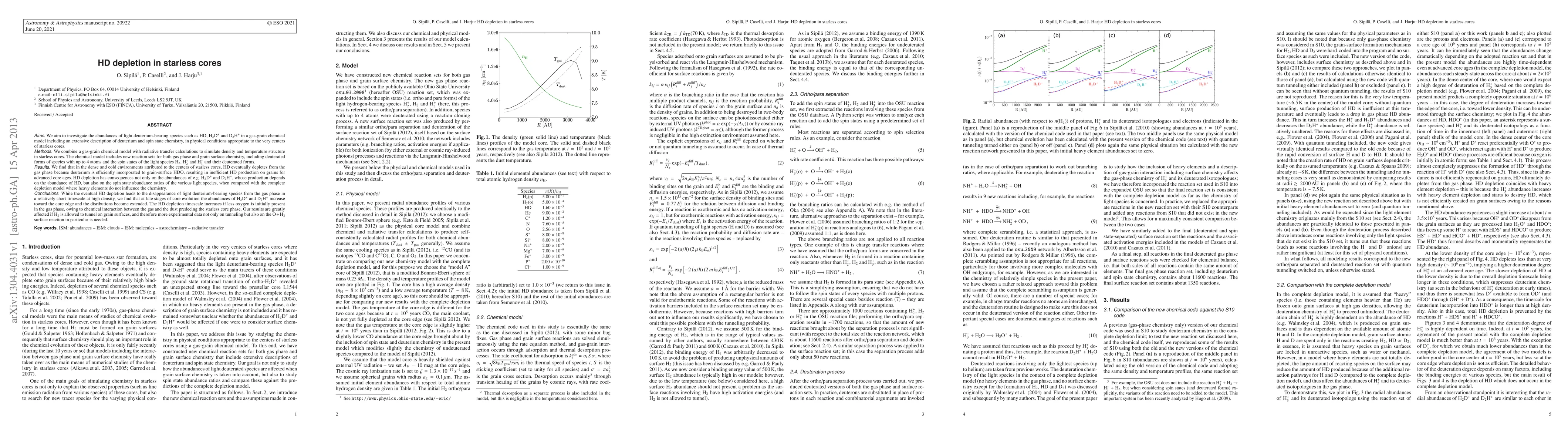 This paper investigates the depletion of HD in starless cores through a gas-grain chemical model, finding that HD depletes due to deuterium incorporation into grain-surface HDO, affecting the abundances of H2D+ and D2H+. The study highlights the need for more experimental data on H2 tunneling and O + H2 surface reactions.