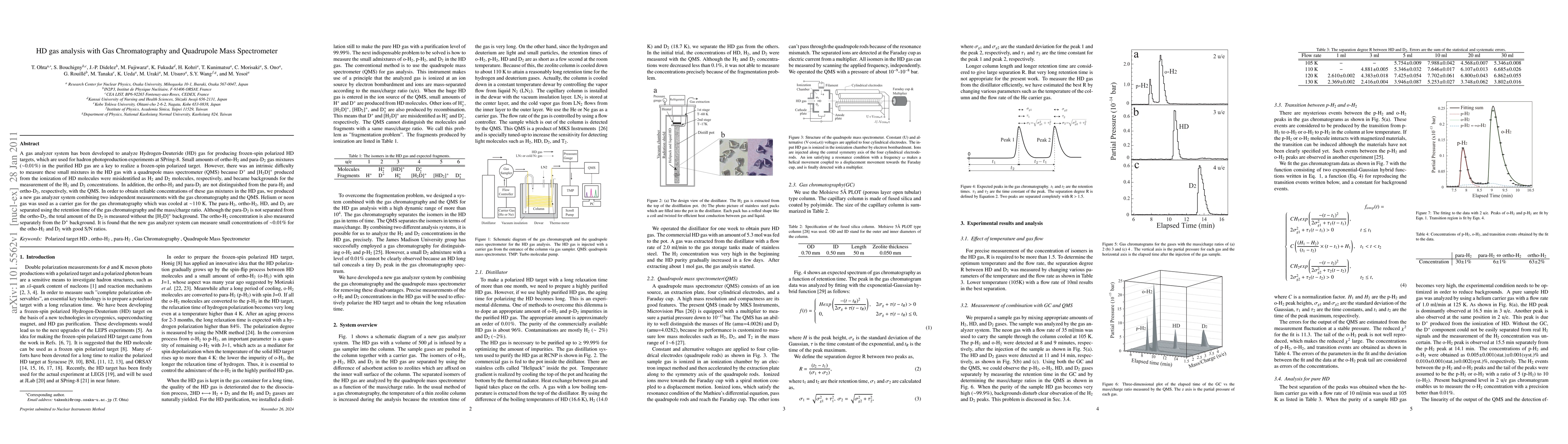 This paper presents a new gas analyzer system combining gas chromatography and quadrupole mass spectrometry to accurately measure trace amounts of ortho-H$_2$ and para-D$_2$ in Hydrogen-Deuteride gas, crucial for producing frozen-spin polarized targets for hadron photoproduction experiments. The system achieves reliable detection of these gas mixtures at concentrations of $\sim$0.01% with high signal-to-noise ratios.