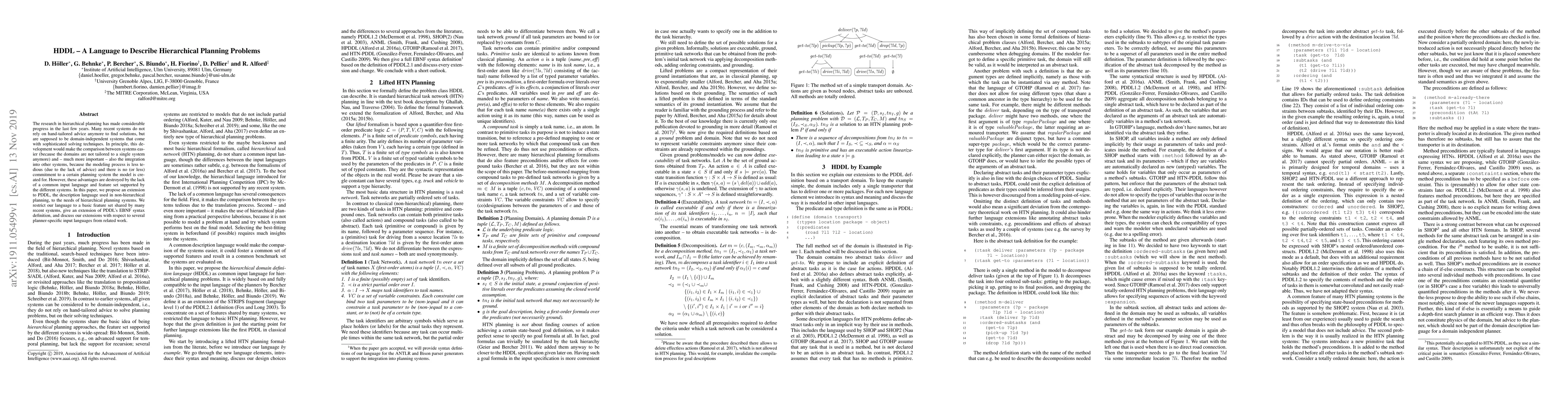 The paper proposes HDDL, an extension of PDDL for describing hierarchical planning problems, focusing on a basic feature set shared by many recent systems to enable domain-independent planning and easier integration.