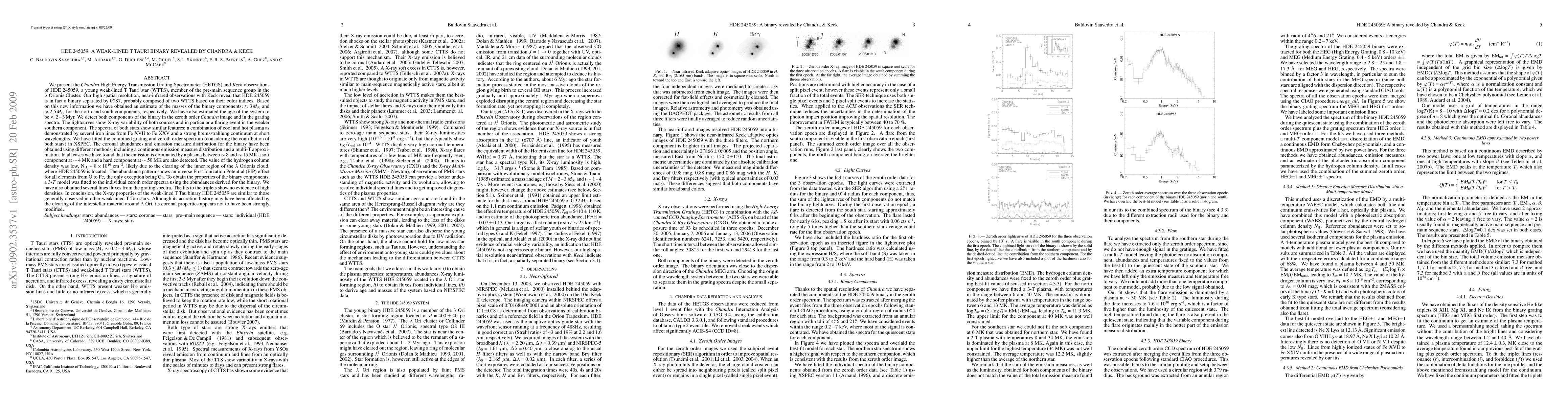 HDE 245059, a young weak-lined T Tauri binary in the Lambda Orionis Cluster, was revealed to consist of two components separated by 0.87" using high-resolution Keck and Chandra observations. The binary's masses are estimated at 3M_{sun} and 2.5M_{sun} for the north and south components, respectively.