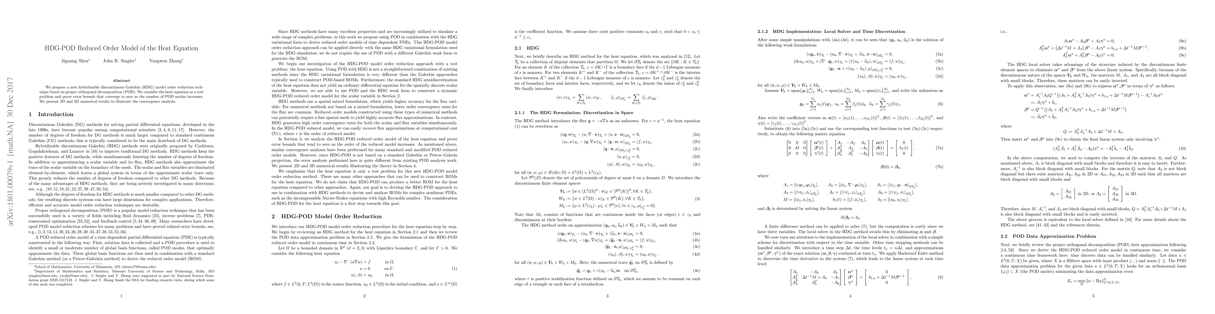 The paper introduces a novel HDG-POD method for reducing the complexity of solving the heat equation, providing error bounds that decrease with increasing POD modes. Numerical results in 2D and 3D validate this convergence analysis.