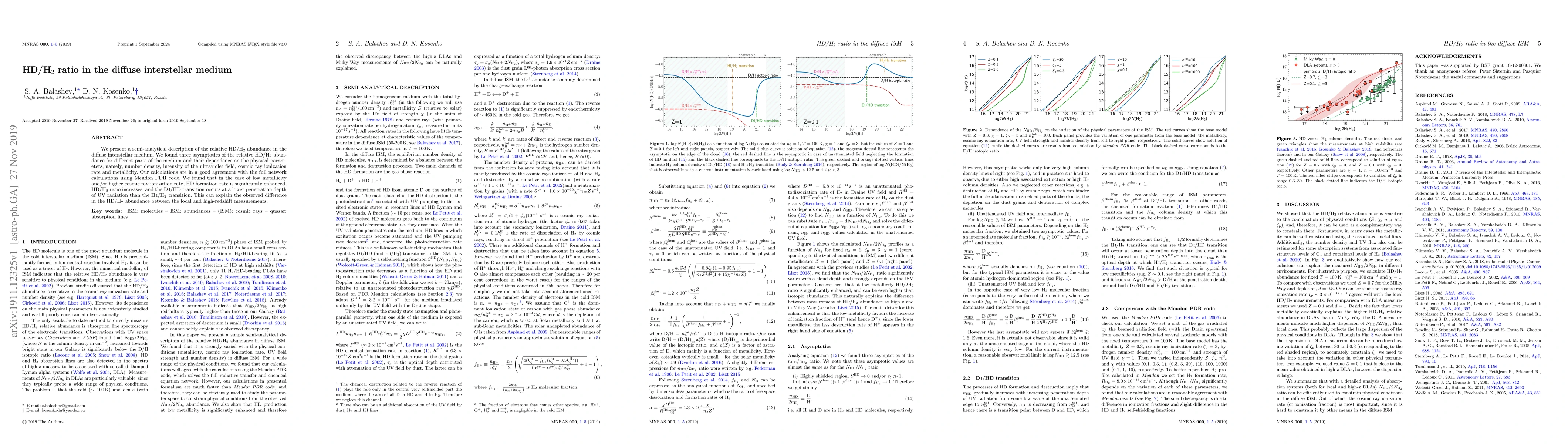 This paper presents a semi-analytical model for the HD/H$_2$ ratio in the diffuse interstellar medium, identifying three distinct asymptotics dependent on physical parameters like density and cosmic-ray ionization. The model explains enhanced HD formation under low metallicity and high cosmic ray ionization, offering a potential explanation for observed differences in HD/H$_2$ abundance between local and high-redshift measurements.