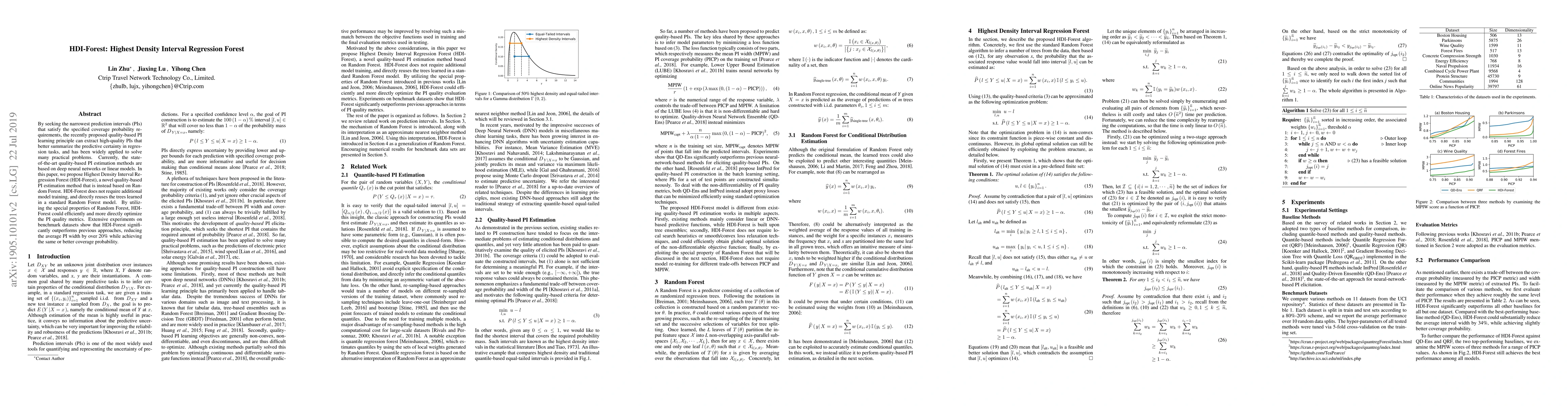 The paper introduces HDI-Forest, a novel quality-based prediction interval estimation method based on Random Forest, which efficiently optimizes prediction intervals without additional training. Experiments demonstrate HDI-Forest's superior performance over existing methods, reducing prediction interval width by over 20% while maintaining coverage probability.