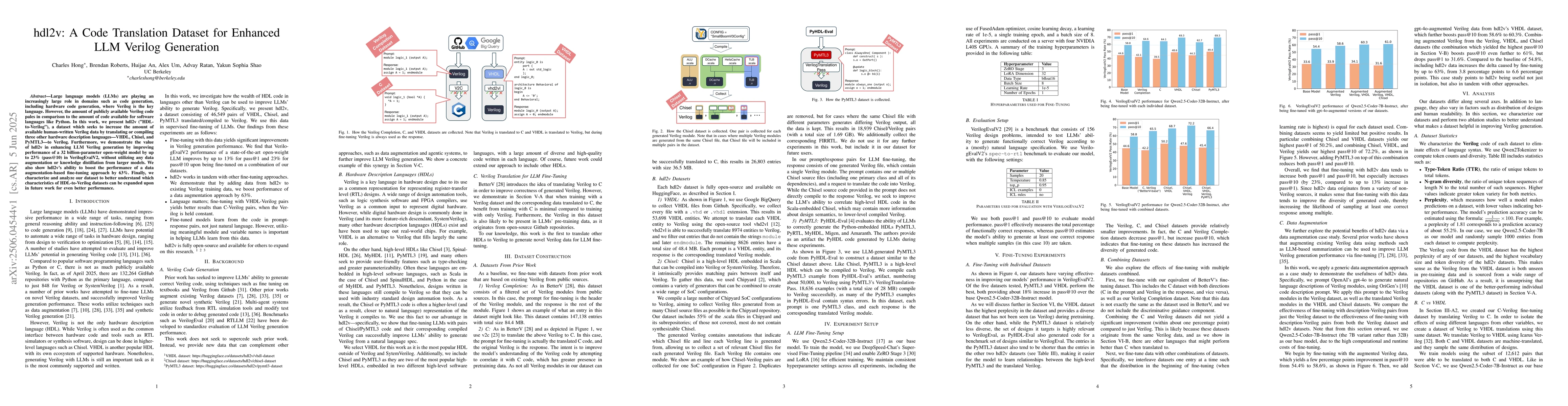 The paper presents hdl2v, a dataset created by translating VHDL, Chisel, and PyMTL3 to Verilog, aiming to augment available human-written Verilog data for enhancing LLM Verilog generation.