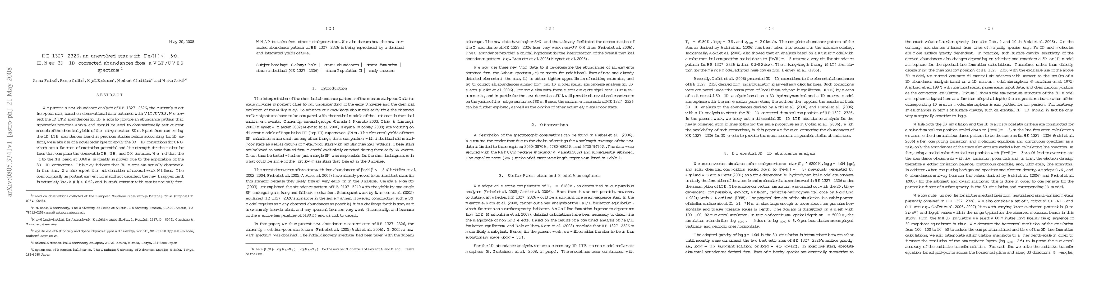 New spectroscopic analysis of HE 1327-2326 reveals improved abundance patterns for elements like Ni and a strong limit on Li, contradicting previous observations.