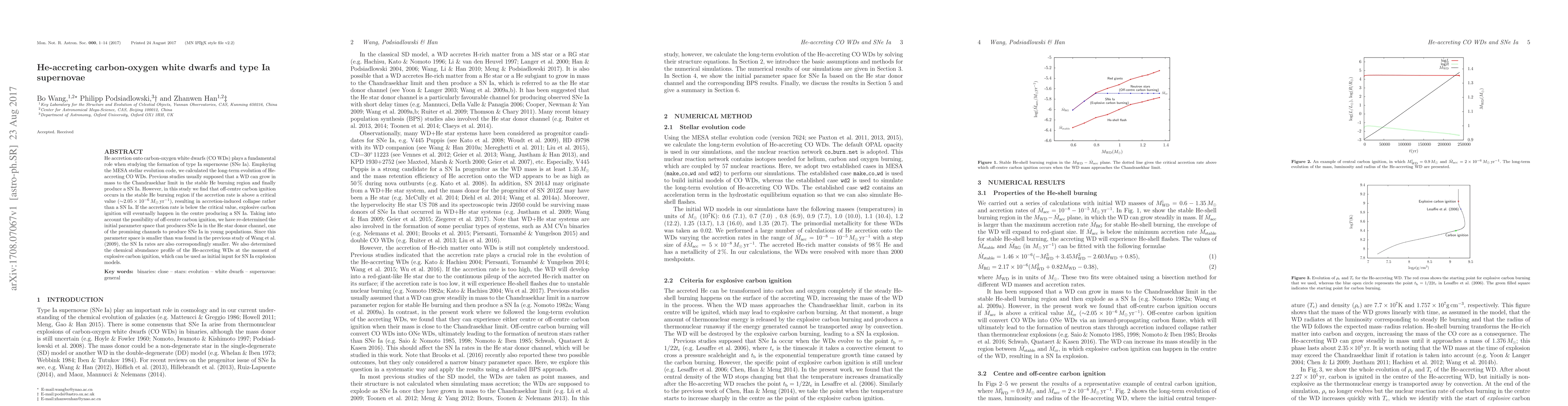 This study investigates the evolution of He-accreting carbon-oxygen white dwarfs (CO WDs) using the MESA code, finding that high accretion rates lead to off-centre carbon ignition and collapse instead of type Ia supernovae (SNe Ia). Lower accretion rates result in central carbon ignition and SNe Ia, thus redefining the parameter space for SN Ia formation in the He star donor channel.