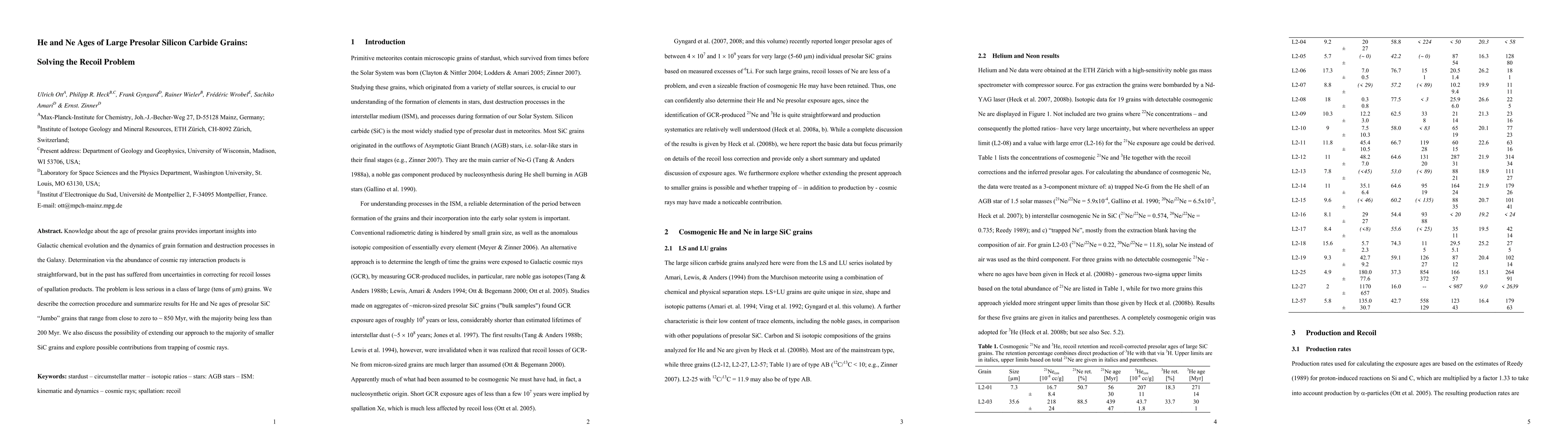 Knowledge about the age of presolar grains provides important insights into Galactic chemical evolution and the dynamics of grain formation and destruction processes in the Galaxy. Determination from the abundance of cosmic ray interaction products is straightforward, but in the past has suffered from uncertainties in correcting for recoil losses of spallation products. The problem is less serious in a class of large (tens of micrometer) grains. We describe the correction procedure and summarise results for He and Ne ages of presolar SiC "Jumbo" grains that range from close to zero to ~850 Myr, with the majority being less than 200 Myr. We also discuss the possibility of extending our approach to the majority of smaller SiC grains and explore possible contributions from trapping of cosmic rays.