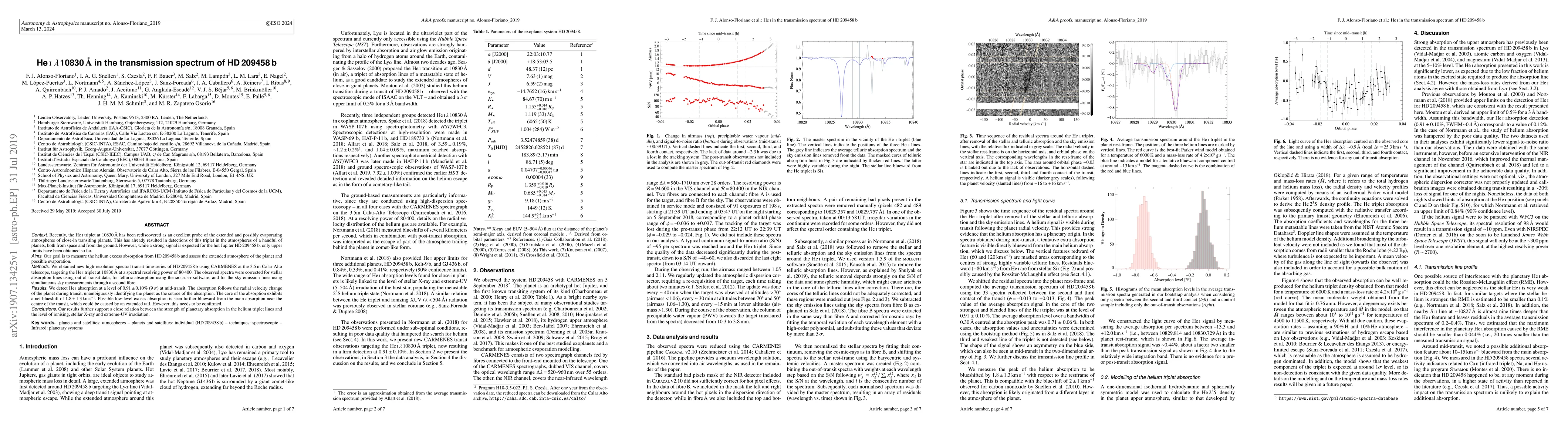 The research utilized high-resolution spectral transit time-series observations with CARMENES at the 3.5 m Calar Alto telescope, targeting the He I triplet at 10830 Å, to measure helium excess absorption in HD 209458 b's atmosphere.