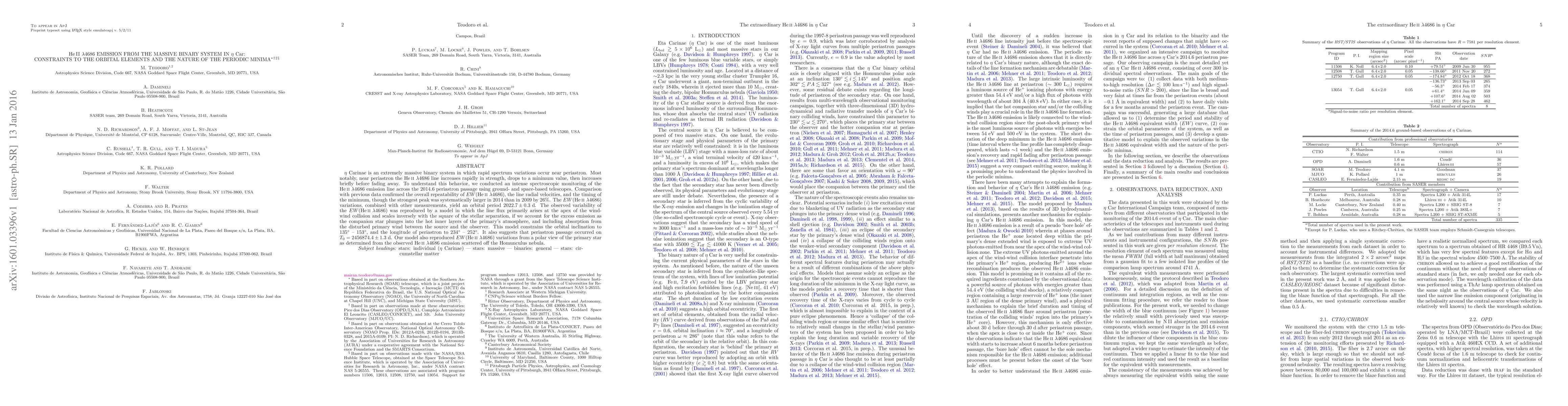 This paper investigates the He II $\lambda$4686 emission line in the massive binary system of $\eta$ Carinae, revealing its periodic behavior near periastron. The study constrains orbital elements and suggests the emission originates from the wind-wind collision region, providing insights into the system's orbital inclination and periastron timing.
