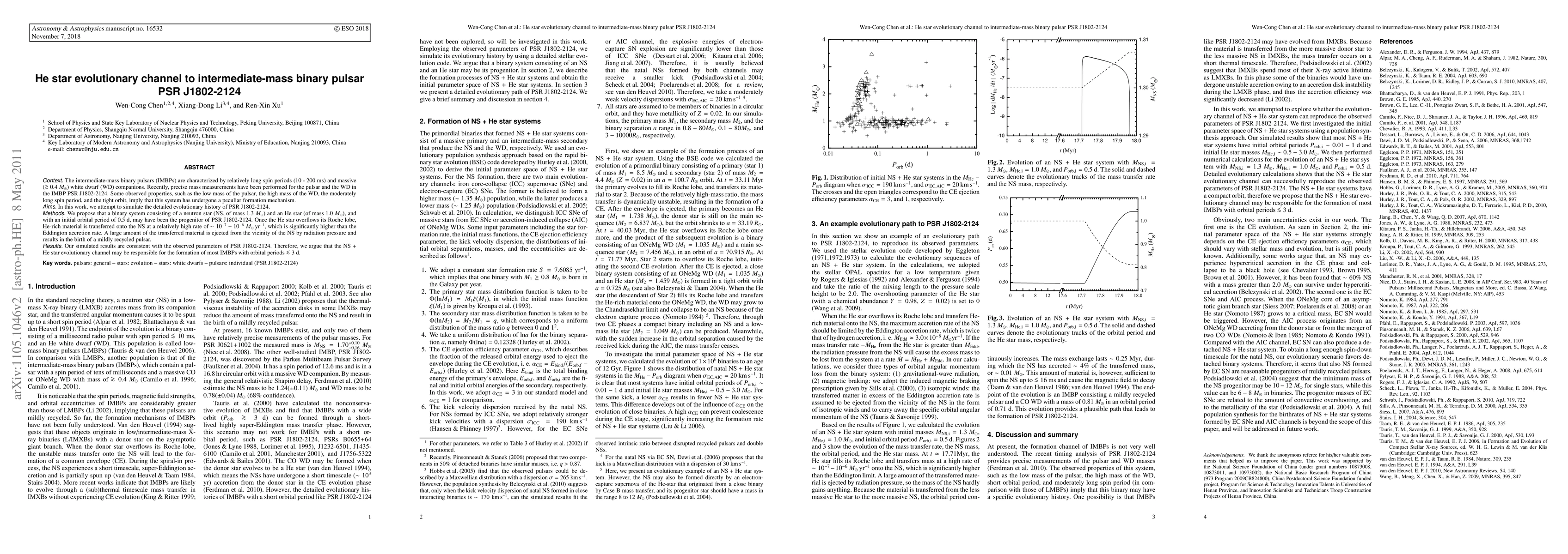 The intermediate-mass binary pulsars (IMBPs) are characterized by relatively long spin periods (10 - 200 ms) and massive ($\ga 0.4 M_{\odot}$) white dwarf (WD) companions. Recently, precise mass measurements have been performed for the pulsar and the WD in the IMBP PSR J1802-2124. Some observed properties, such as the low mass of the pulsar, the high mass of the WD, the moderately long spin period, and the tight orbit, imply that this system has undergone a peculiar formation mechanism. In this work, we attempt to simulate the detailed evolutionary history of PSR J1802-2124. We propose that a binary system consisting of a neutron star (NS, of mass $1.3 M_{\odot}$) and an He star (of mass $1.0 M_{\odot}$), and with an initial orbital period of 0.5 d, may have been the progenitor of PSR J1802-2124. Once the He star overflows its Roche lobe, He-rich material is transferred onto the NS at a relatively high rate of $\sim 10^{-7}-10^{-6} M_{\odot}\,\rm yr^{-1}$, which is significantly higher than the Eddington accretion rate. A large amount of the transferred material is ejected from the vicinity of the NS by radiation pressure and results in the birth of a mildly recycled pulsar. Our simulated results are consistent with the observed parameters of PSR J1802-2124. Therefore, we argue that the NS + He star evolutionary channel may be responsible for the formation of most IMBPs with orbital periods $\la 3 \rm d$.