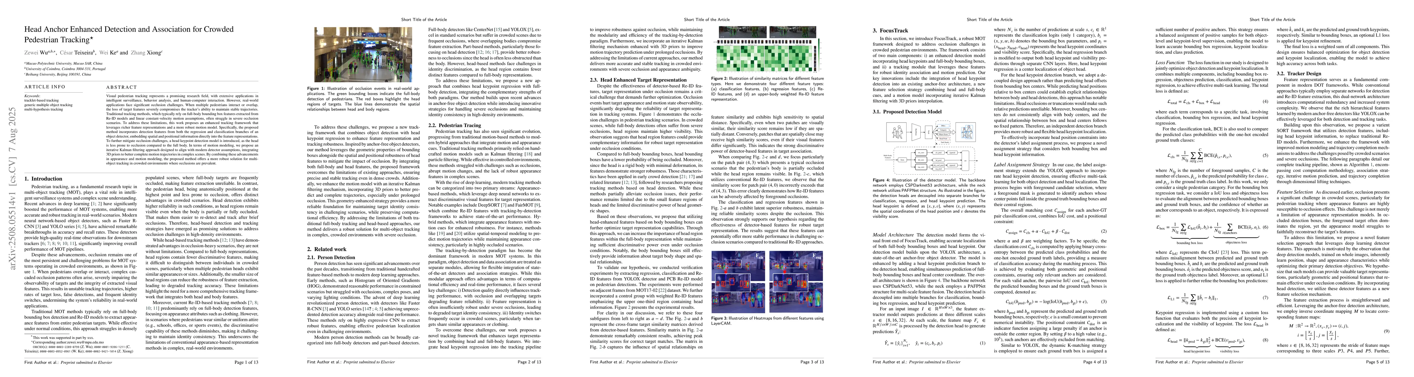 Visual pedestrian tracking represents a promising research field, with extensive applications in intelligent surveillance, behavior analysis, and human-computer interaction. However, real-world applications face significant occlusion challenges. When multiple pedestrians interact or overlap, the loss of target features severely compromises the tracker's ability to maintain stable trajectories. Traditional tracking methods, which typically rely on full-body bounding box features extracted from {Re-ID} models and linear constant-velocity motion assumptions, often struggle in severe occlusion scenarios. To address these limitations, this work proposes an enhanced tracking framework that leverages richer feature representations and a more robust motion model. Specifically, the proposed method incorporates detection features from both the regression and classification branches of an object detector, embedding spatial and positional information directly into the feature representations. To further mitigate occlusion challenges, a head keypoint detection model is introduced, as the head is less prone to occlusion compared to the full body. In terms of motion modeling, we propose an iterative Kalman filtering approach designed to align with modern detector assumptions, integrating 3D priors to better complete motion trajectories in complex scenes. By combining these advancements in appearance and motion modeling, the proposed method offers a more robust solution for multi-object tracking in crowded environments where occlusions are prevalent.