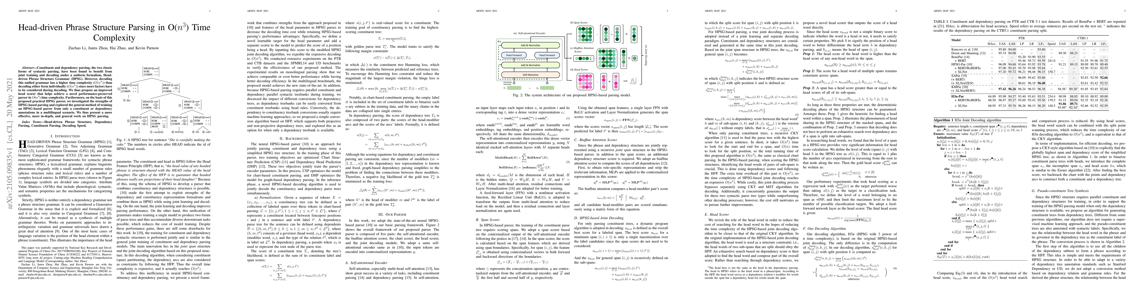 This paper proposes an improved head scorer to achieve a Head-driven Phrase Structure Grammar (HPSG) parser with $O(n^3)$ time complexity, preserving performance. It also explores training an HPSG-based parser from constituent or dependency annotations in a multilingual context, presenting a more effective and general approach to HPSG parsing.