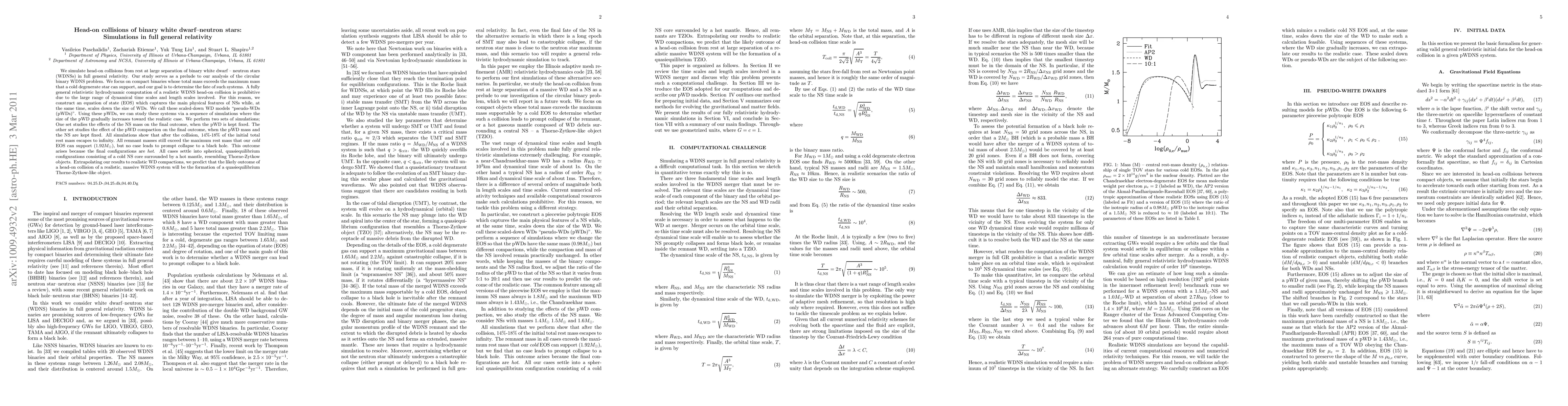 This paper simulates head-on collisions of binary white dwarf-neutron star systems in full general relativity, using scaled-down white dwarf models to manage computational complexity. The simulations predict that such collisions result in the formation of quasiequilibrium Thorne-Zytkow-like objects, rather than black holes, due to the hot final configurations.