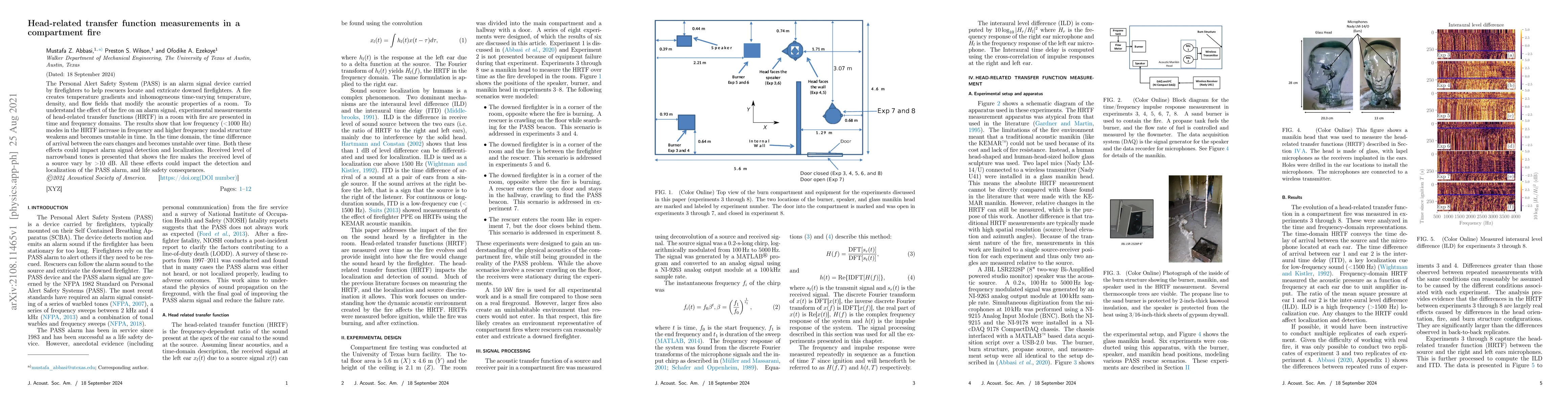 This paper investigates how compartment fires affect head-related transfer functions (HRTF) and the detection of alarm signals. Experimental results show that low-frequency HRTF modes shift up in frequency while higher frequencies become unstable, impacting signal localization and detection.