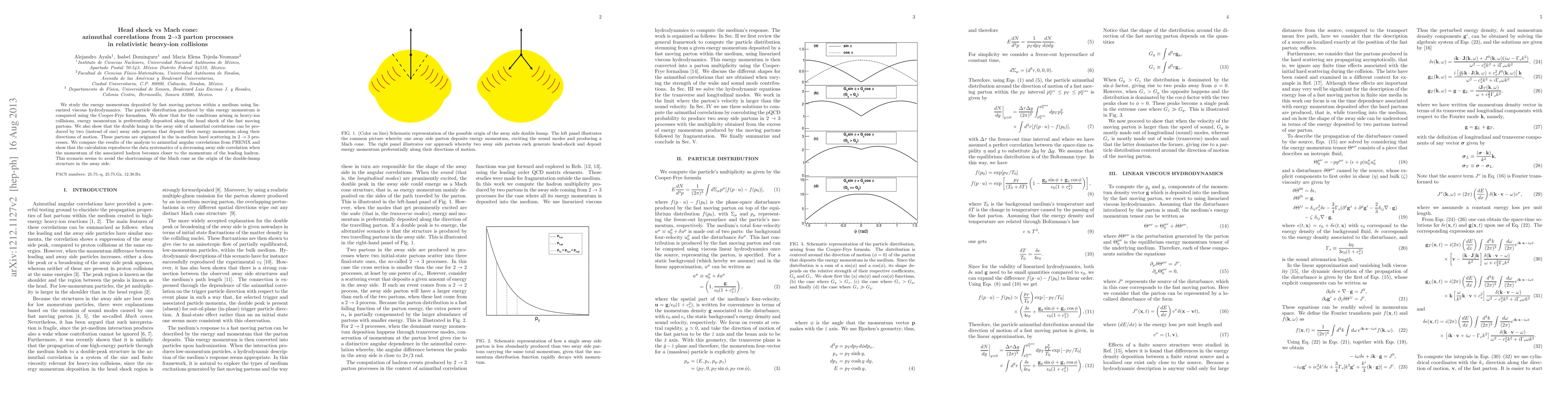 We study the energy-momentum deposited by fast moving partons within a medium using linearized viscous hydrodynamics. The particle distribution produced by this energy-momentum is computed using the Cooper-Frye formalism. We show that for the conditions arising in heavy-ion collisions, energy momentum is preferentially deposited along the head shock of the fast moving partons. We also show that the double hump in the away-side of azimuthal correlations can be produced by two (instead of one) away-side partons that deposit their energy-momentum along their directions of motion. These partons are originated in the in-medium hard scattering in 2 to 3 processes. We compare the results of the analysis to azimuthal angular correlations from PHENIX and show that the calculation reproduces the data systematics of a decreasing away-side correlation when the momentum of the associated hadron becomes closer to the momentum of the leading hadron. This scenario seems to avoid the shortcomings of the Mach cone as the origin of the double-hump structure in the away-side