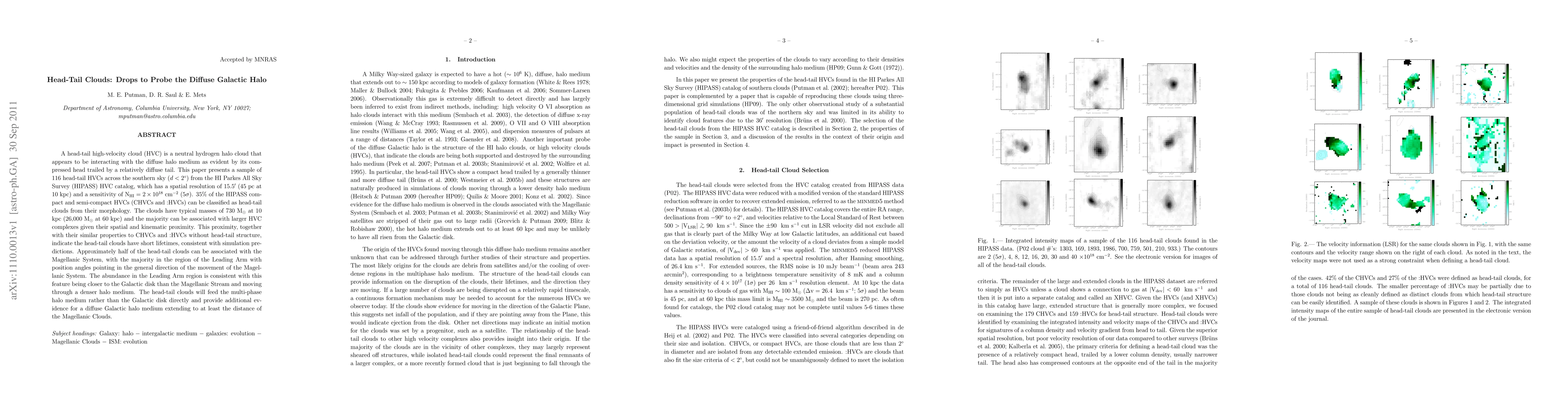 This paper catalogs 116 head-tail high-velocity clouds (HVCs) from the HIPASS survey, revealing their interaction with the diffuse Galactic halo. These clouds, with masses up to 26,000 M_sun, are likely short-lived and associated with the Magellanic System, suggesting they feed the multi-phase halo medium rather than the Galactic disk.