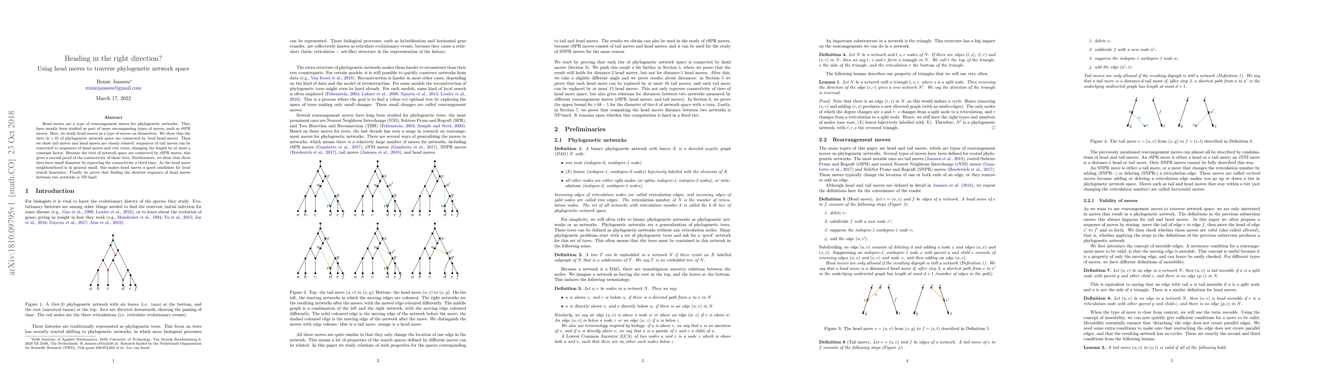 This paper explores head moves, a specific type of rearrangement in phylogenetic networks. It demonstrates that these head moves can connect different tiers of network space locally, and that head and tail moves are interconvertible with at most a constant length difference. The study also proves the connectivity of these tiers via rSPR moves and highlights the small diameter of these tiers, suggesting head moves' suitability for local search heuristics. Lastly, it confirms that determining the shortest head move sequence between two networks is computationally challenging.