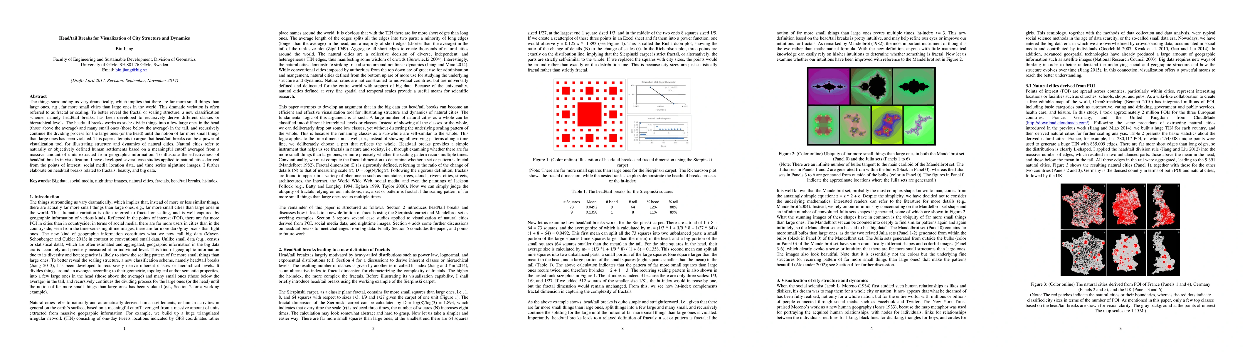The things surrounding us vary dramatically, which implies that there are far more small things than large ones, e.g., far more small cities than large ones in the world. This dramatic variation is often referred to as fractal or scaling. To better reveal the fractal or scaling structure, a new classification scheme, namely head/tail breaks, has been developed to recursively derive different classes or hierarchical levels. The head/tail breaks works as such: divide things into a few large ones in the head (those above the average) and many small ones (those below the average) in the tail, and recursively continue the dividing process for the large ones (or the head) until the notion of far more small things than large ones has been violated. This paper attempts to argue that head/tail breaks can be a powerful visualization tool for illustrating structure and dynamics of natural cities. Natural cities refer to naturally or objectively defined human settlements based on a meaningful cutoff averaged from a massive amount of units extracted from geographic information. To illustrate the effectiveness of head/tail breaks in visualization, I have developed several case studies applied to natural cities derived from the points of interest, social media location data, and time series nighttime images. I further elaborate on head/tail breaks related to fractals, beauty, and big data. Keywords: Big data, social media, nighttime images, natural cities, fractals, head/tail breaks, ht-index