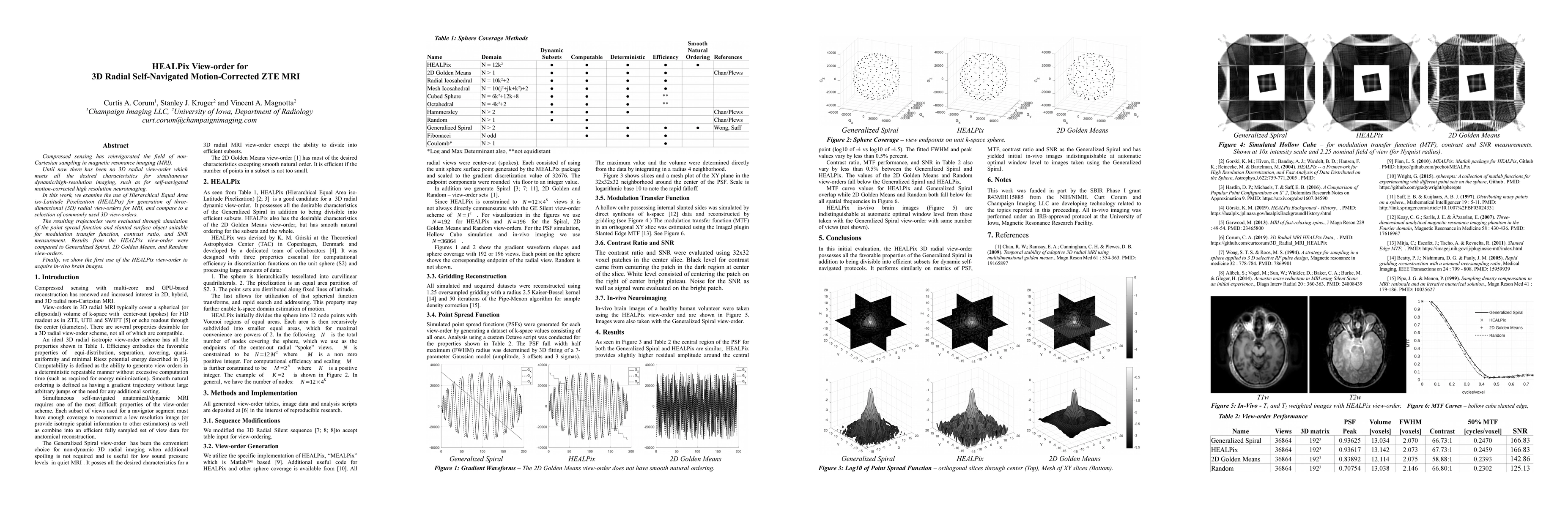 Compressed sensing has reinvigorated the field of non-Cartesian sampling in magnetic resonance imaging (MRI). Until now there has been no 3D radial view-order which meets all the desired characteristics for simultaneous dynamic/high-resolution imaging, such as for self-navigated motion-corrected high resolution neuroimaging. In this work, we examine the use of Hierarchical Equal Area iso-Latitude Pixelization (HEALPix) for generation of three-dimensional (3D) radial view-orders for MRI, and compare to a selection of commonly used 3D view-orders. The resulting trajectories were evaluated through simulation of the point spread function and slanted surface object suitable for modulation transfer function, contrast ratio, and SNR measurement. Results from the HEALPix view-order were compared to Generalized Spiral, 2D Golden Means, and Random view-orders. Finally, we show the first use of the HEALPix view-order to acquire in-vivo brain images.