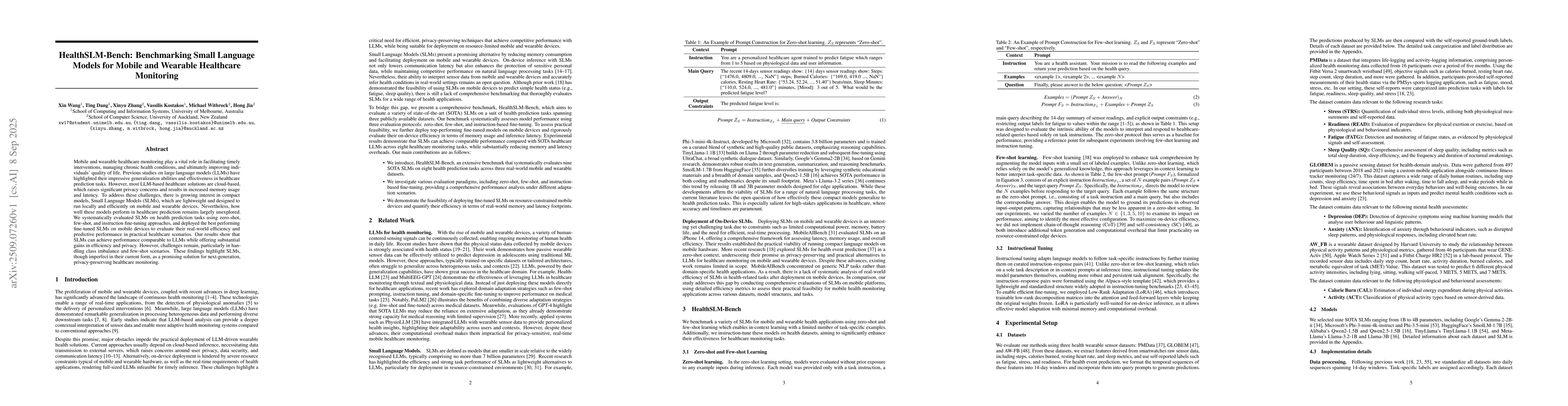 Mobile and wearable healthcare monitoring play a vital role in facilitating timely interventions, managing chronic health conditions, and ultimately improving individuals' quality of life. Previous studies on large language models (LLMs) have highlighted their impressive generalization abilities and effectiveness in healthcare prediction tasks. However, most LLM-based healthcare solutions are cloud-based, which raises significant privacy concerns and results in increased memory usage and latency. To address these challenges, there is growing interest in compact models, Small Language Models (SLMs), which are lightweight and designed to run locally and efficiently on mobile and wearable devices. Nevertheless, how well these models perform in healthcare prediction remains largely unexplored. We systematically evaluated SLMs on health prediction tasks using zero-shot, few-shot, and instruction fine-tuning approaches, and deployed the best performing fine-tuned SLMs on mobile devices to evaluate their real-world efficiency and predictive performance in practical healthcare scenarios. Our results show that SLMs can achieve performance comparable to LLMs while offering substantial gains in efficiency and privacy. However, challenges remain, particularly in handling class imbalance and few-shot scenarios. These findings highlight SLMs, though imperfect in their current form, as a promising solution for next-generation, privacy-preserving healthcare monitoring.