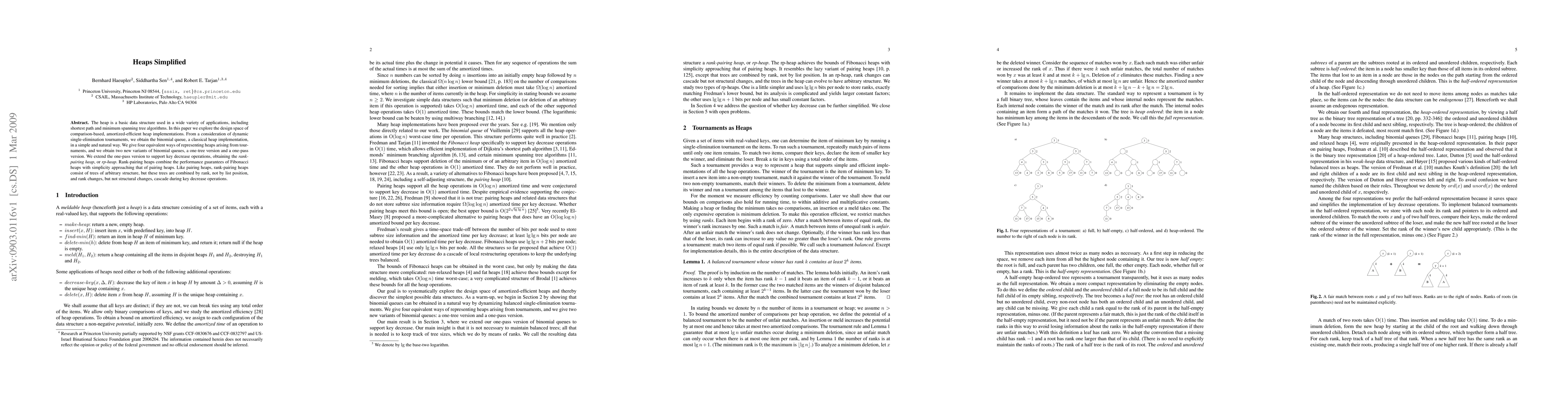 This paper explores efficient heap implementations, deriving the binomial queue from dynamic single-elimination tournaments and introducing two new variants. The rank-pairing heap combines the performance of Fibonacci heaps with the simplicity of pairing heaps, supporting key decrease operations efficiently.