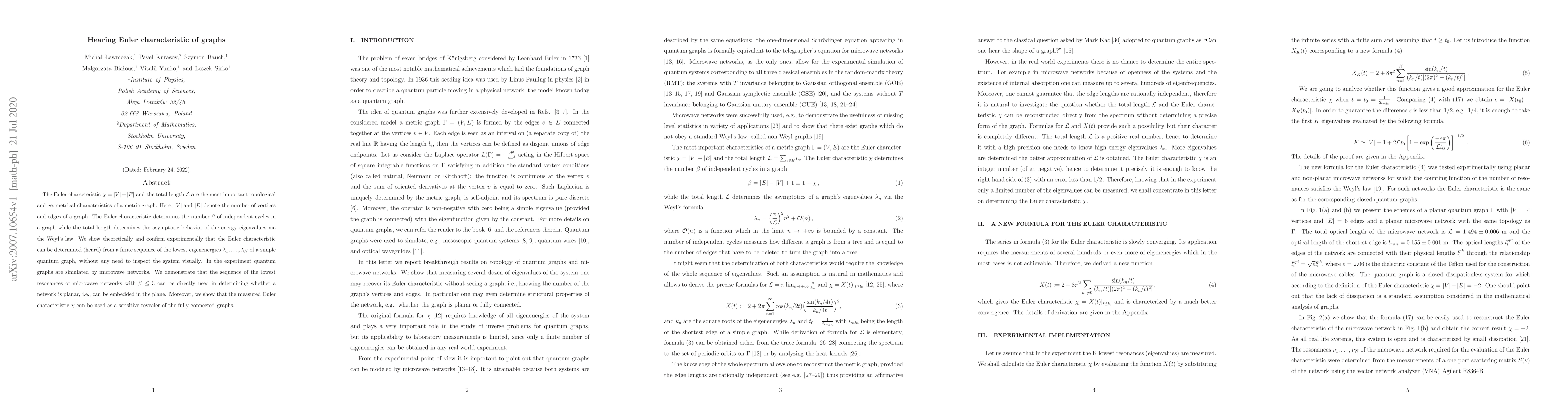 Researchers demonstrated that the Euler characteristic of a graph can be detected from its lowest eigenenergies without visual inspection, even in fully connected graphs, using microwave network simulations.