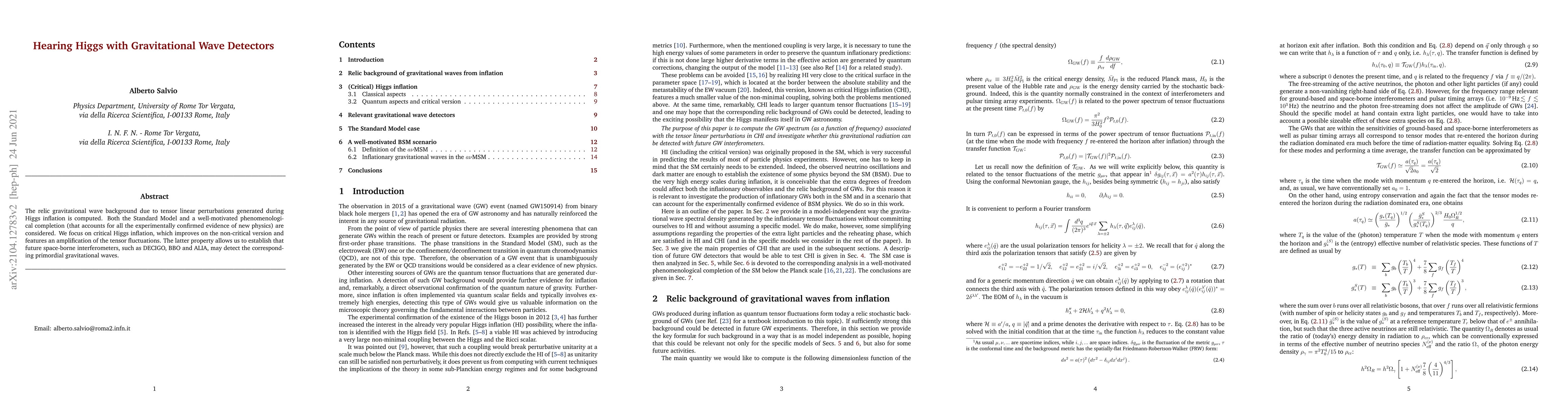 The paper calculates gravitational waves from Higgs inflation, finding that future space-based detectors like DECIGO, BBO, and ALIA could potentially detect these primordial waves, especially with critical Higgs inflation which enhances tensor fluctuations.