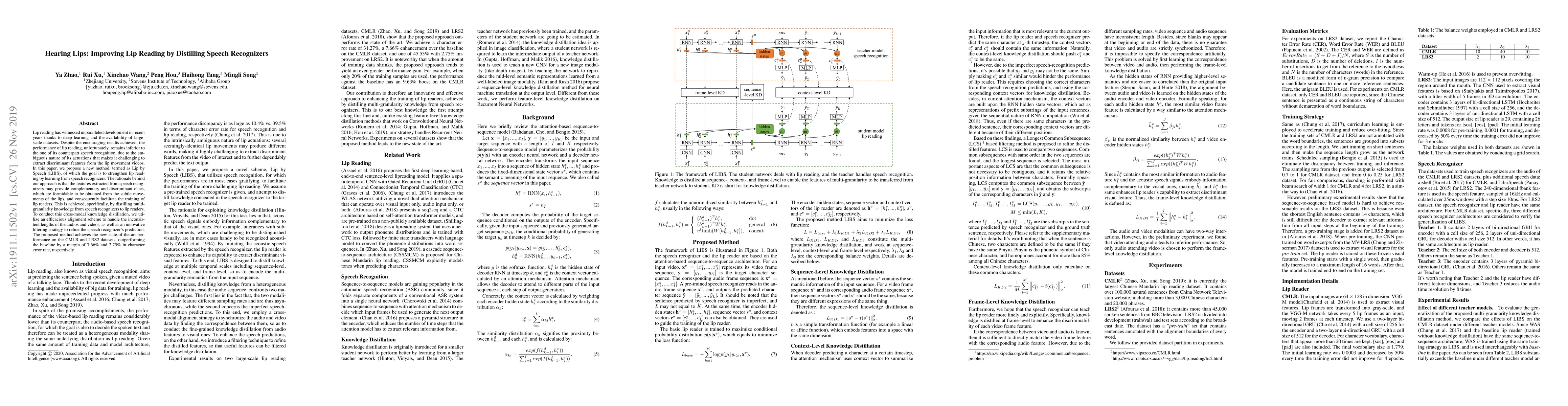 This paper proposes a method called Lip by Speech (LIBS) to enhance lip reading by distilling knowledge from speech recognizers. The approach aims to leverage the features extracted from speech recognizers to improve the training of lip readers, achieving state-of-the-art results on CMLR and LRS2 datasets with significant reductions in character error rates.