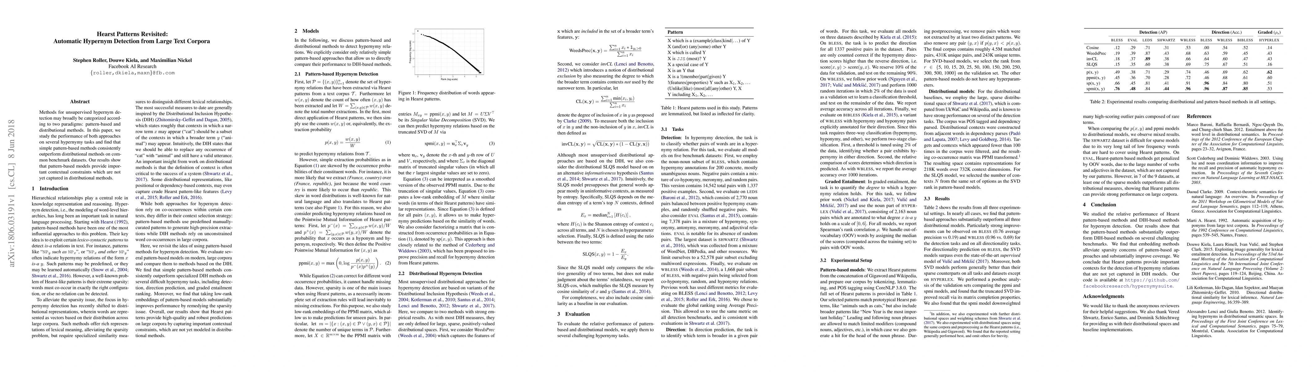 This paper compares pattern-based and distributional methods for unsupervised hypernym detection, finding that pattern-based methods outperform distributional ones on benchmark datasets due to their contextual constraints. The study highlights the importance of simple pattern-based models in capturing contextual information.