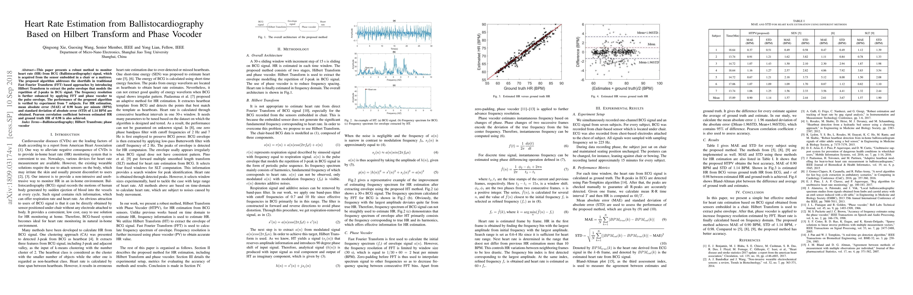 This paper proposes a method for heart rate estimation from ballistocardiography using Hilbert Transform and phase vocoder, achieving a mean absolute error of 0.90 BPM and a Pearson correlation coefficient of 0.98, outperforming traditional FFT-based approaches.