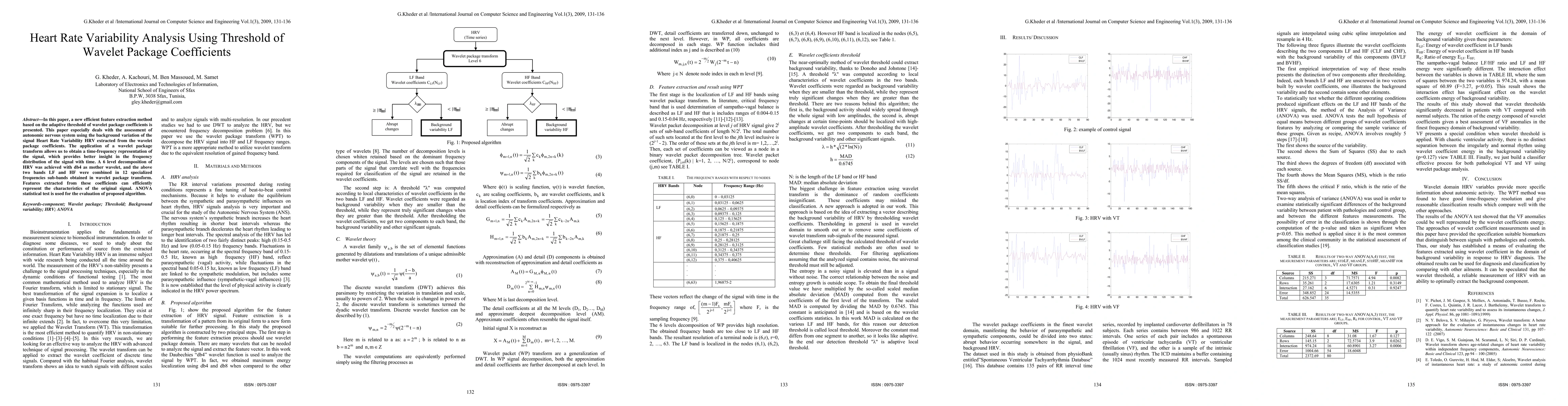 In this paper, a new efficient feature extraction method based on the adaptive threshold of wavelet package coefficients is presented. This paper especially deals with the assessment of autonomic nervous system using the background variation of the signal Heart Rate Variability HRV extracted from the wavelet package coefficients. The application of a wavelet package transform allows us to obtain a time-frequency representation of the signal, which provides better insight in the frequency distribution of the signal with time. A 6 level decomposition of HRV was achieved with db4 as mother wavelet, and the above two bands LF and HF were combined in 12 specialized frequencies sub-bands obtained in wavelet package transform. Features extracted from these coefficients can efficiently represent the characteristics of the original signal. ANOVA statistical test is used for the evaluation of proposed algorithm.