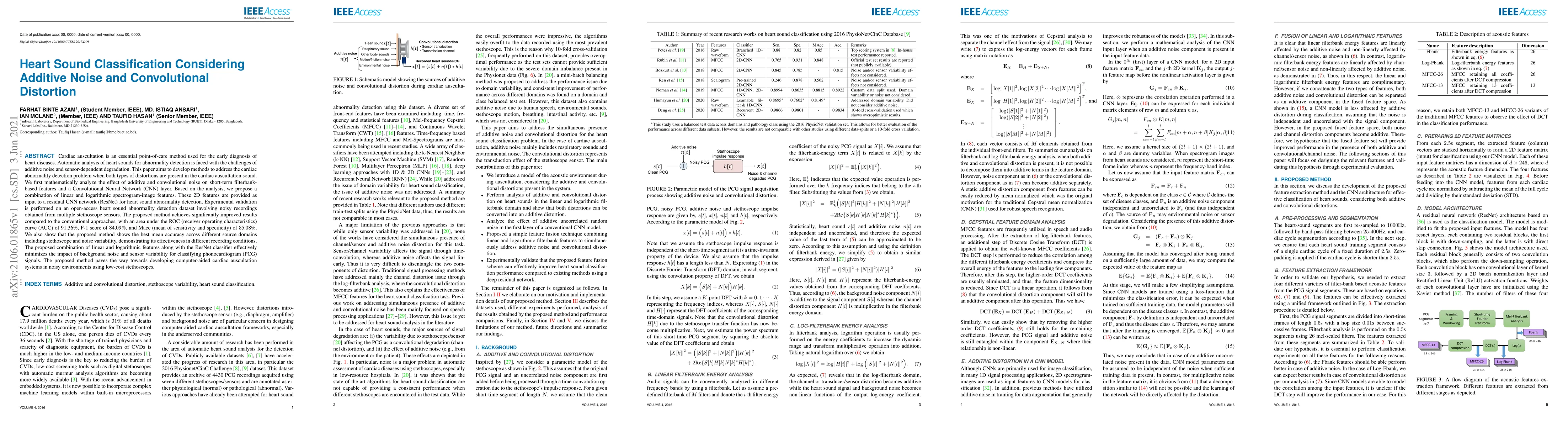 This paper develops an advanced method for detecting heart sound abnormalities using a combination of linear and logarithmic spectrogram-image features and a residual CNN network (ResNet) to address additive noise and convolutional distortion. The method achieves superior performance on a noisy dataset, demonstrating effectiveness across different recording conditions.