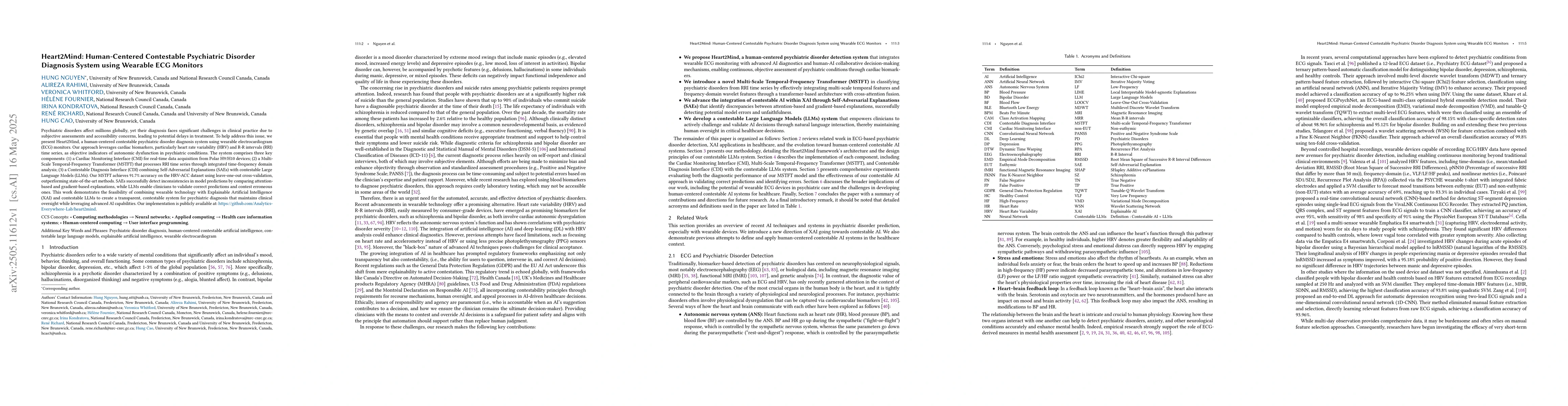 Heart2Mind is novel in its combination of wearable technology, Explainable AI, and contestable LLMs for transparent and verifiable psychiatric disorder diagnosis.