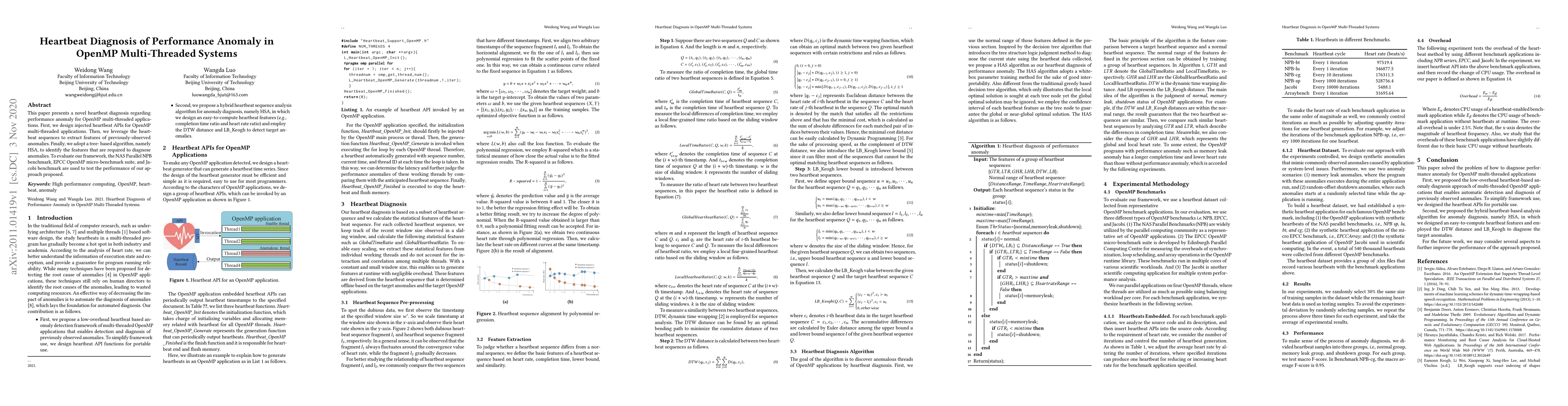 This paper introduces a novel heartbeat diagnosis method for detecting performance anomalies in OpenMP multi-threaded applications, utilizing injected heartbeat APIs and a tree-based algorithm to identify relevant diagnostic features. The proposed framework is evaluated using NAS Parallel NPB, EPCC OpenMP micro-benchmark suite, and Jacobi benchmark.