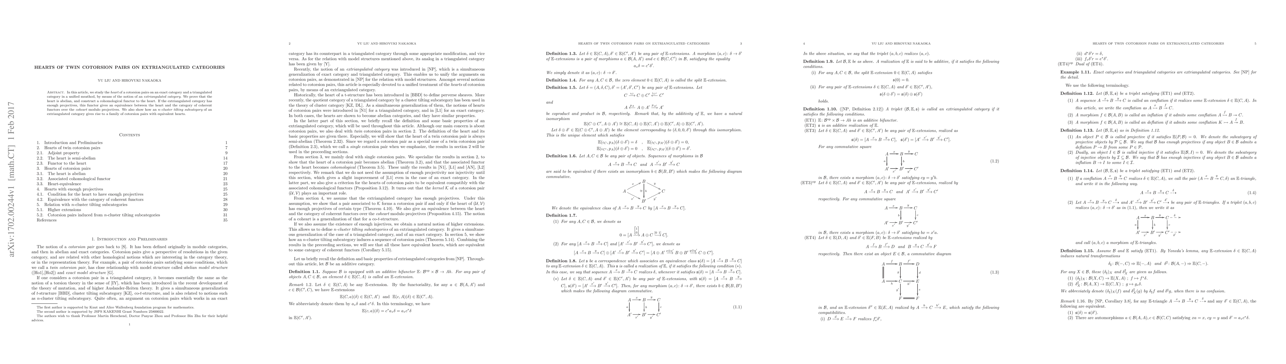 In this article, we study the heart of a cotorsion pairs on an exact category and a triangulated category in a unified meathod, by means of the notion of an extriangulated category. We prove that the heart is abelian, and construct a cohomological functor to the heart. If the extriangulated category has enough projectives, this functor gives an equivalence between the heart and the category of coherent functors over the coheart modulo projectives. We also show how an n-cluster tilting subcategory of an extriangulated category gives rise to a family of cotorsion pairs with equivalent hearts.