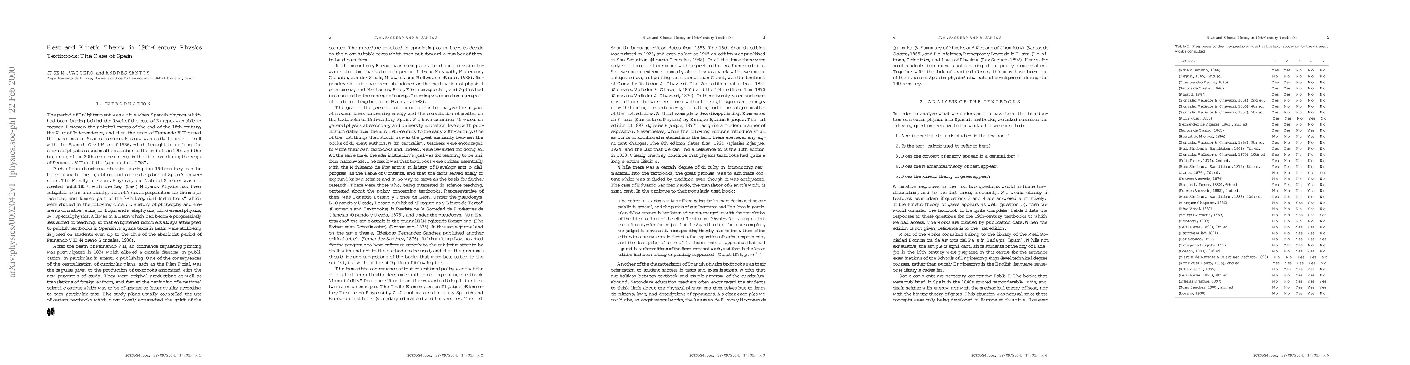 This paper examines the slow integration of contemporary physics concepts, including the kinetic theory of gases, into 19th-century Spanish textbooks due to Spain's scientific backwardness influenced by political turmoil. It analyzes the inclusion of topics like imponderable fluids and the mechanical theory of heat in these educational materials.