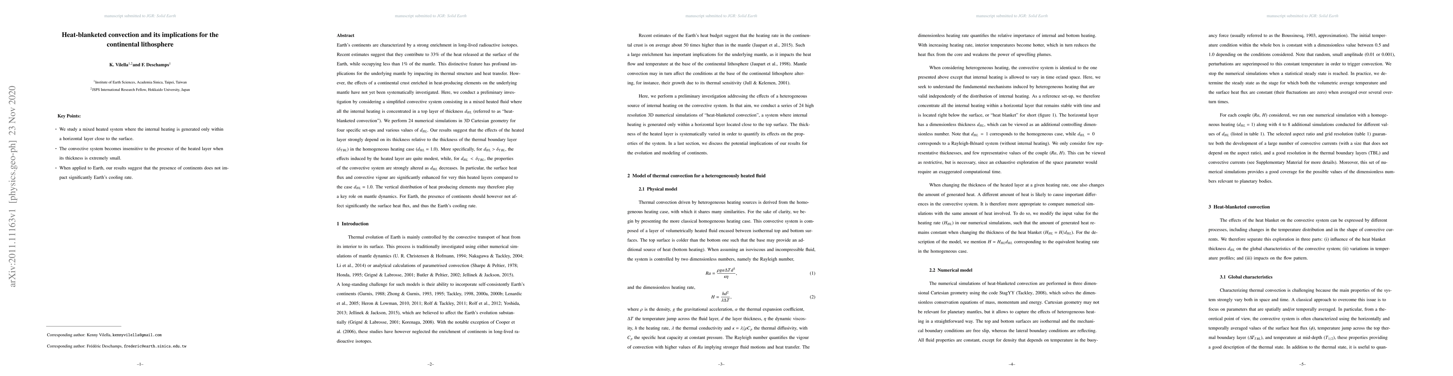 Earth's continents are characterized by a strong enrichment in long-lived radioactive isotopes. Recent estimates suggest that they contribute to 33\% of the heat released at the surface of the Earth, while occupying less than 1\% of the mantle. This distinctive feature has profound implications for the underlying mantle by impacting its thermal structure and heat transfer. However, the effects of a continental crust enriched in heat-producing elements on the underlying mantle have not yet been systematically investigated. Here, we conduct a preliminary investigation by considering a simplified convective system consisting in a mixed heated fluid where all the internal heating is concentrated in a top layer of thickness $d_{HL}$ (referred to as "heat-blanketed convection"). We perform 24 numerical simulations in 3D Cartesian geometry for four specific set-ups and various values of $d_{HL}$. Our results suggest that the effects of the heated layer strongly depend on its thickness relative to the thickness of the thermal boundary layer ($\delta_{TBL}$) in the homogeneous heating case ($d_{HL} = 1.0$). More specifically, for $d_{HL} > \delta_{TBL}$, the effects induced by the heated layer are quite modest, while, for $d_{HL} < \delta_{TBL}$, the properties of the convective system are strongly altered as $d_{HL}$ decreases. In particular, the surface heat flux and convective vigour are significantly enhanced for very thin heated layers compared to the case $d_{HL} = 1.0$. The vertical distribution of heat producing elements may therefore play a key role on mantle dynamics. For Earth, the presence of continents should however not affect significantly the surface heat flux, and thus the Earth's cooling rate.