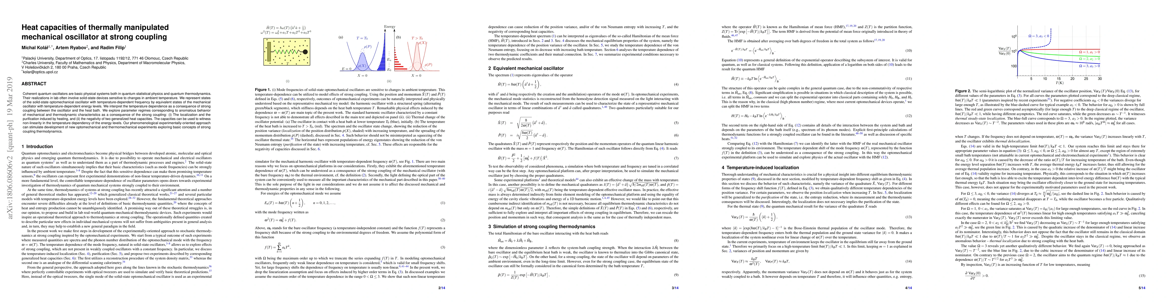 This paper investigates the heat capacities of a thermally manipulated mechanical oscillator under strong coupling, revealing anomalous behavior such as localization, purification, and negative generalized heat capacities due to the coupling with a heat bath. The findings provide a phenomenological framework for future optomechanical and thermomechanical experiments.