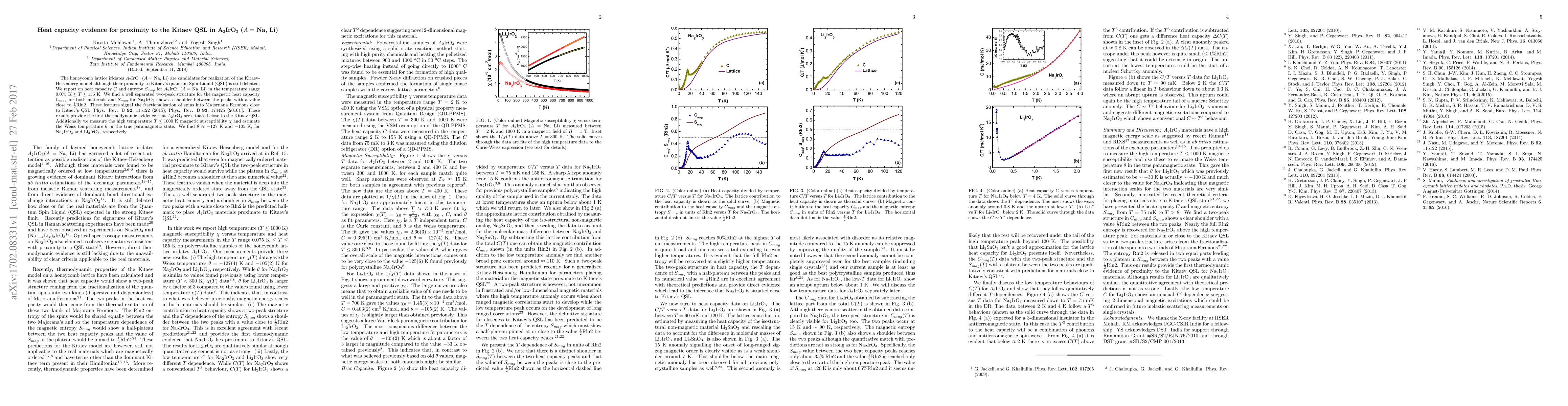 This paper reports heat capacity measurements for $A_2$IrO$_3$ ($A =$ Na, Li) indicating a two-peak structure and fractionalized spin behavior, suggesting proximity to Kitaev's quantum spin-liquid state. The findings provide thermodynamic evidence supporting the materials' potential for realizing Kitaev-Heisenberg physics.