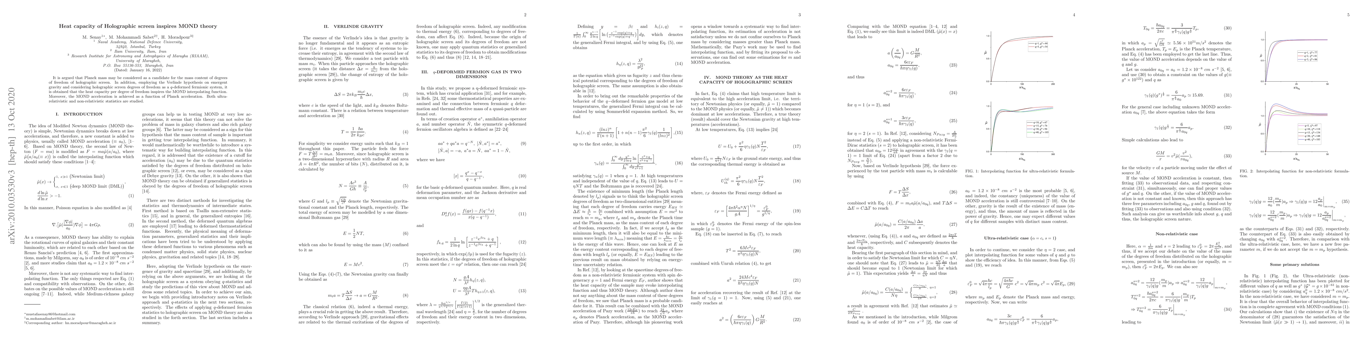 This paper proposes that the Planck mass could represent the mass of degrees of freedom in a holographic screen, leading to a heat capacity that aligns with the Modified Newtonian Dynamics (MOND) interpolating function. It uses the Verlinde hypothesis and $q$-deformed fermionic systems to derive this connection, considering both ultra-relativistic and non-relativistic statistics.