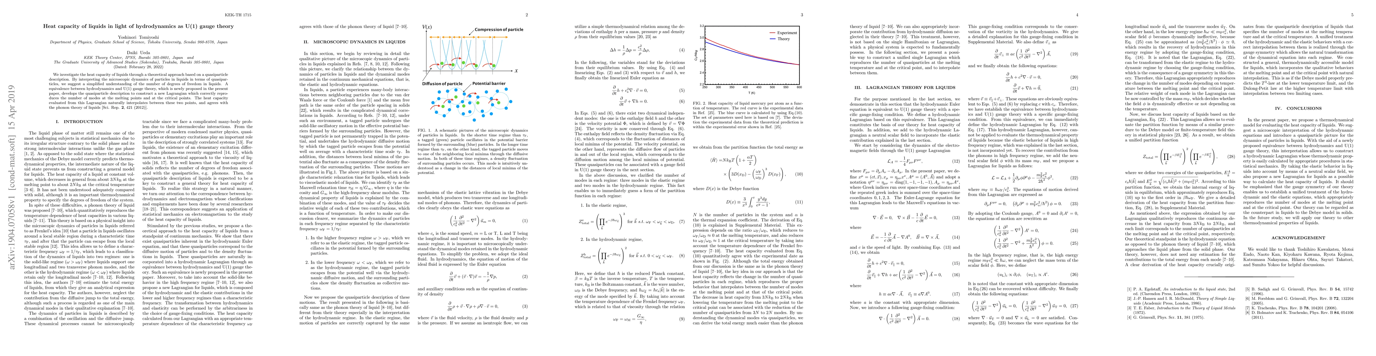 Researchers propose a new theory connecting hydrodynamics to U(1) gauge theory to simplify understanding of liquids' heat capacity and degrees of freedom. Their approach successfully interpolates between melting points and critical points, matching existing phonon theory results.