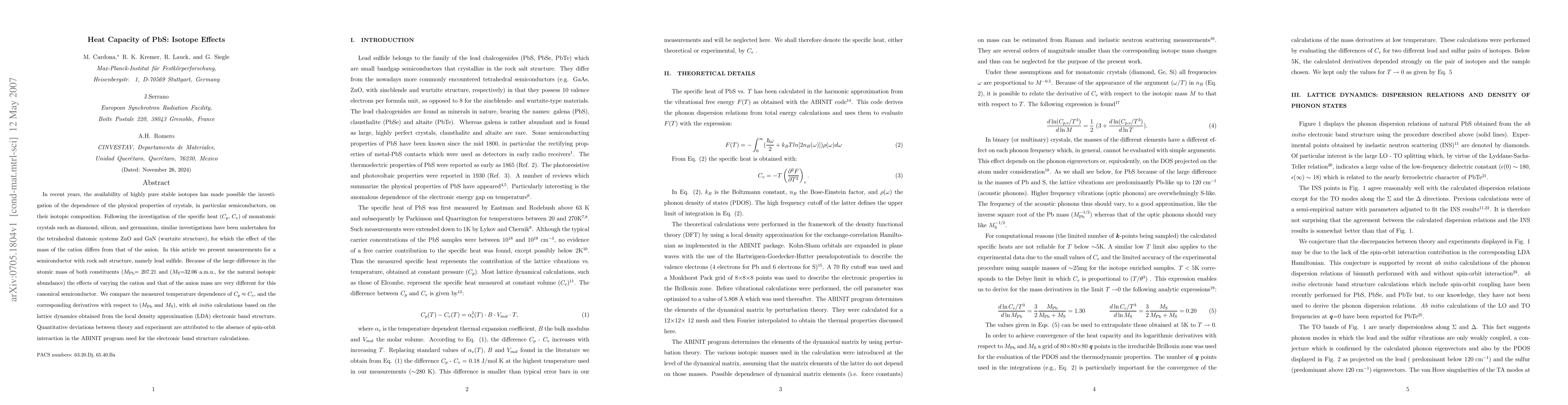 This paper investigates the heat capacity of lead sulfide (PbS) with varying isotopic compositions of lead and sulfur, comparing experimental results with \textit{ab initio} calculations. Significant differences in the effects of isotopic mass variations for cation and anion are observed due to the large atomic mass disparity, with discrepancies between theory and experiment attributed to the lack of spin-orbit interaction in the calculations.