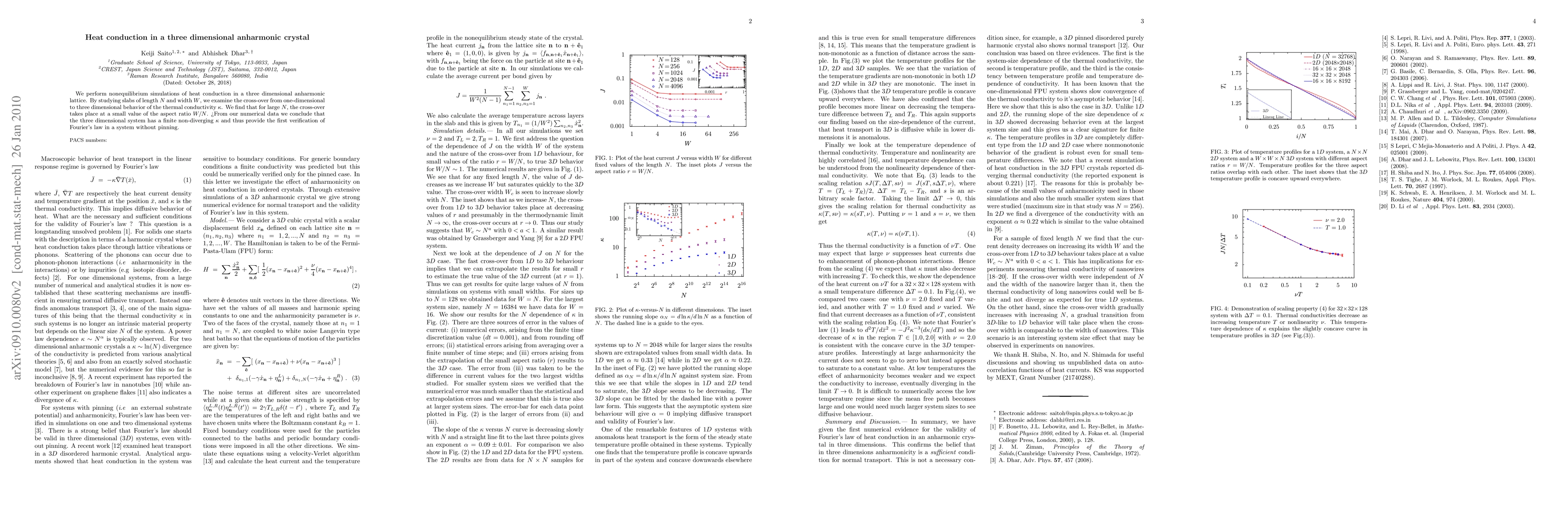 This study investigates nonequilibrium heat conduction in a three-dimensional anharmonic crystal lattice, revealing a transition from one-dimensional to three-dimensional thermal conductivity as slab dimensions change. The research confirms the finite, non-diverging thermal conductivity in three dimensions, verifying Fourier's law in an anharmonic system without pinning.