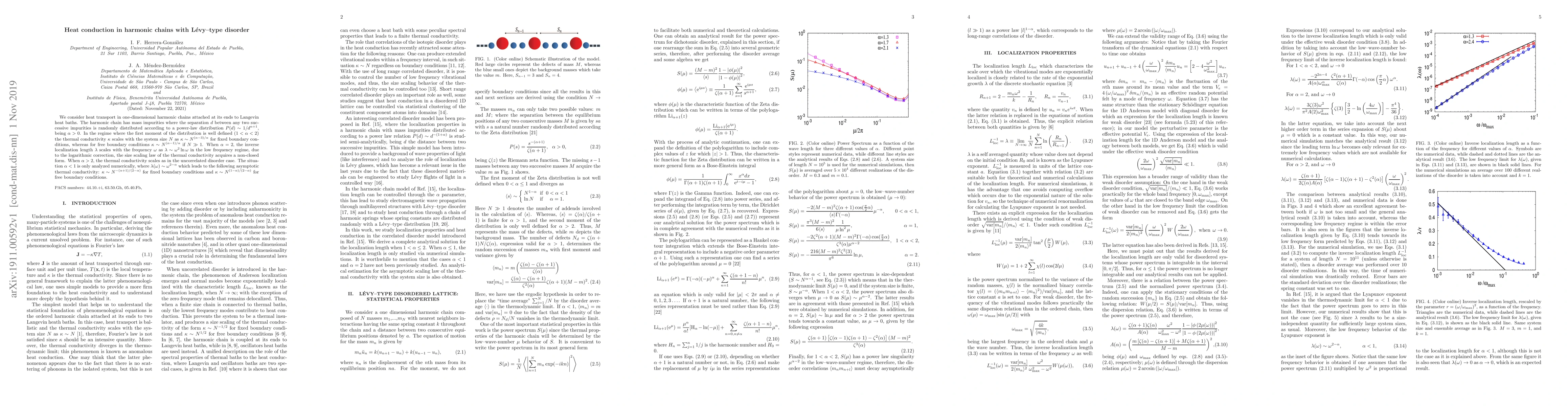 This paper investigates heat conduction in one-dimensional harmonic chains with mass impurities following a power-law distribution. The thermal conductivity scales with system size differently depending on the disorder parameter, with distinct scaling laws for fixed and free boundary conditions.