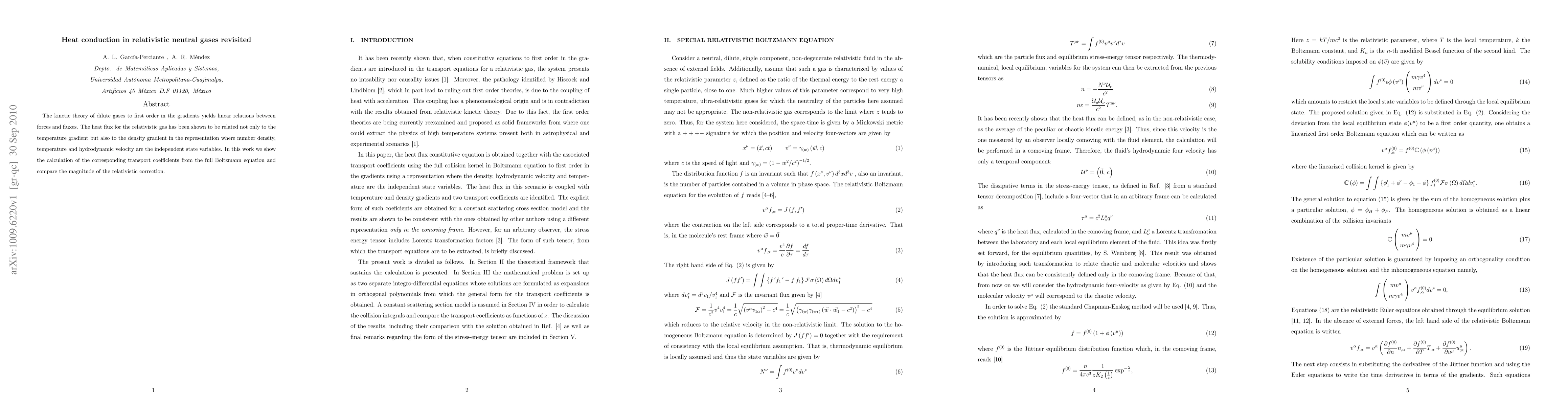The kinetic theory of dilute gases to first order in the gradients yields linear relations between forces and fluxes. The heat flux for the relativistic gas has been shown to be related not only to the temperature gradient but also to the density gradient in the representation where number density, temperature and hydrodynamic velocity are the independent state variables. In this work we show the calculation of the corresponding transport coefficients from the full Boltzmann equation and compare the magnitude of the relativistic correction.