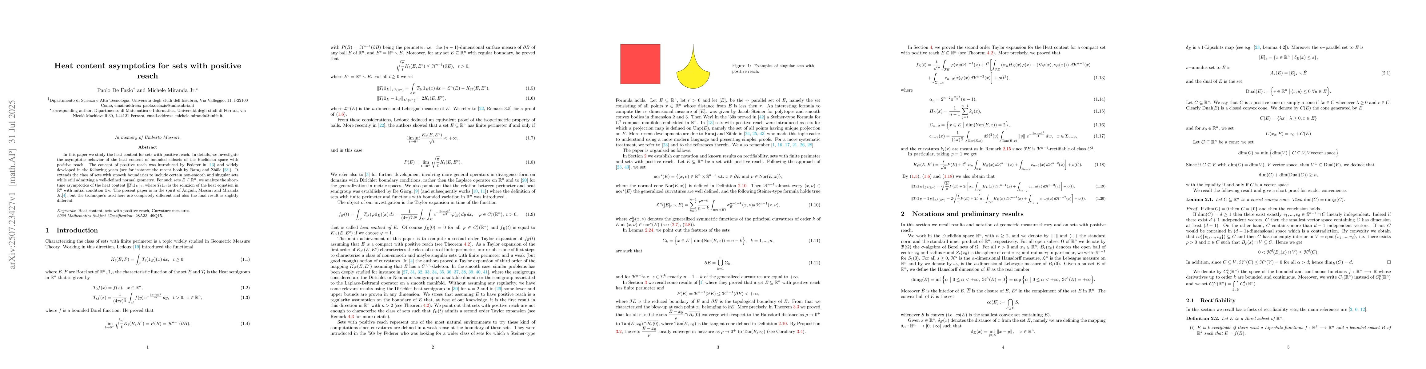 The main technical contribution is a new formula for calculating the heat content of sets with positive reach.
